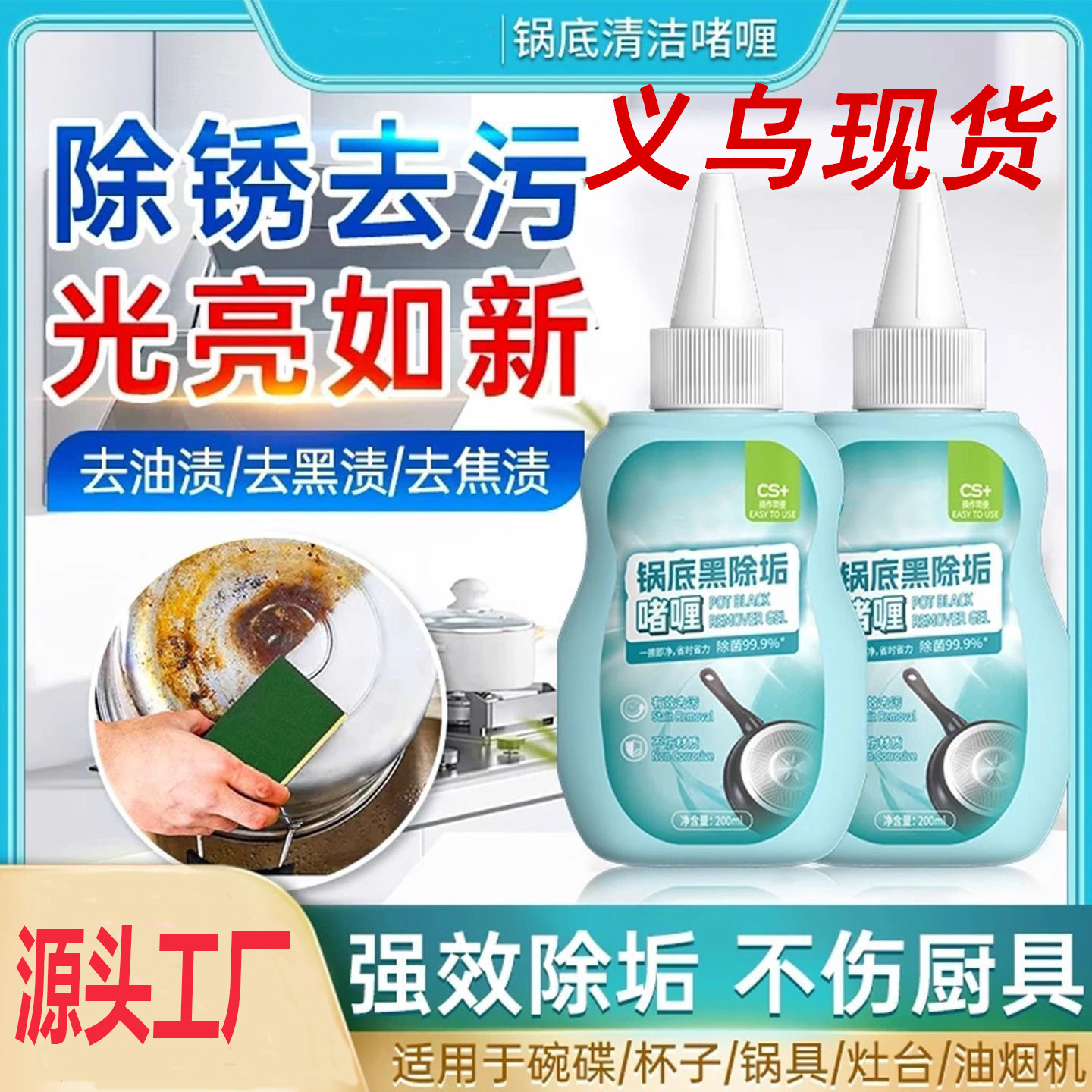 鍋底の黒い汚れクリーナー、ステンレス製キッチン用品の強力洗浄、除染・スケール除去剤、鍋底洗浄加工品、スケール除去ジェル