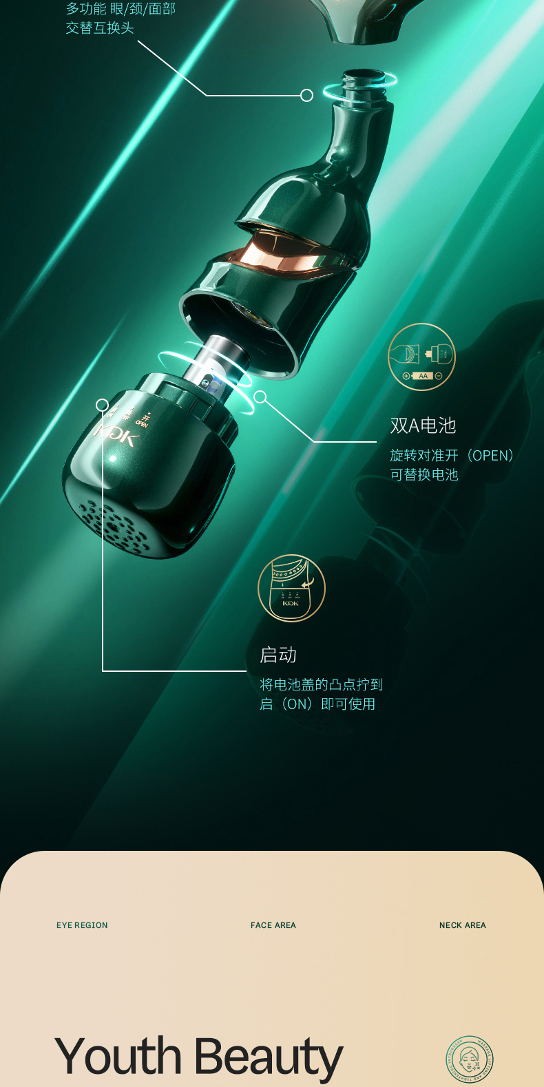KDK四维多功能提拉按摩仪可更换按摩头脸部精华导入仪家用美容仪