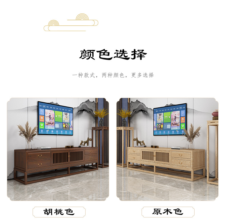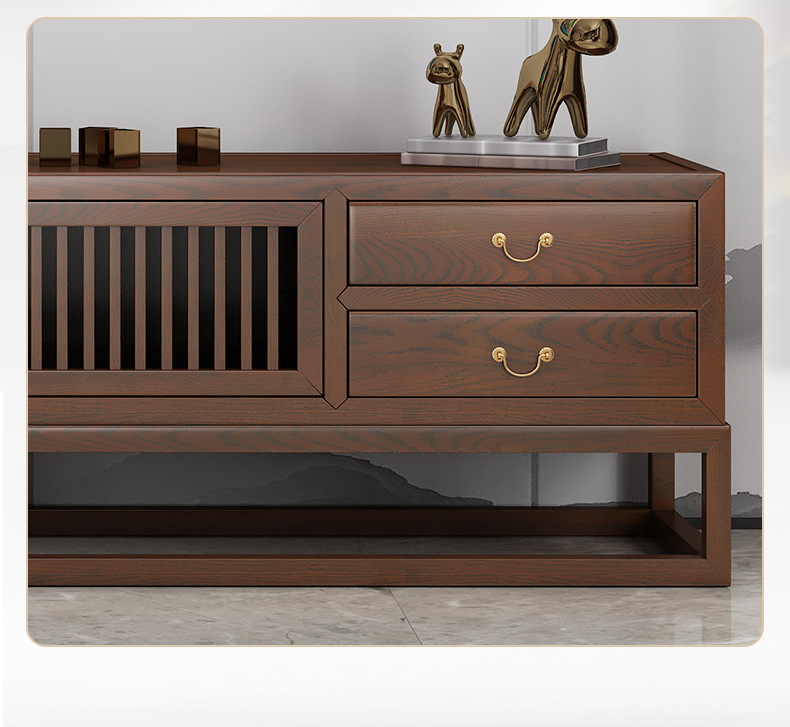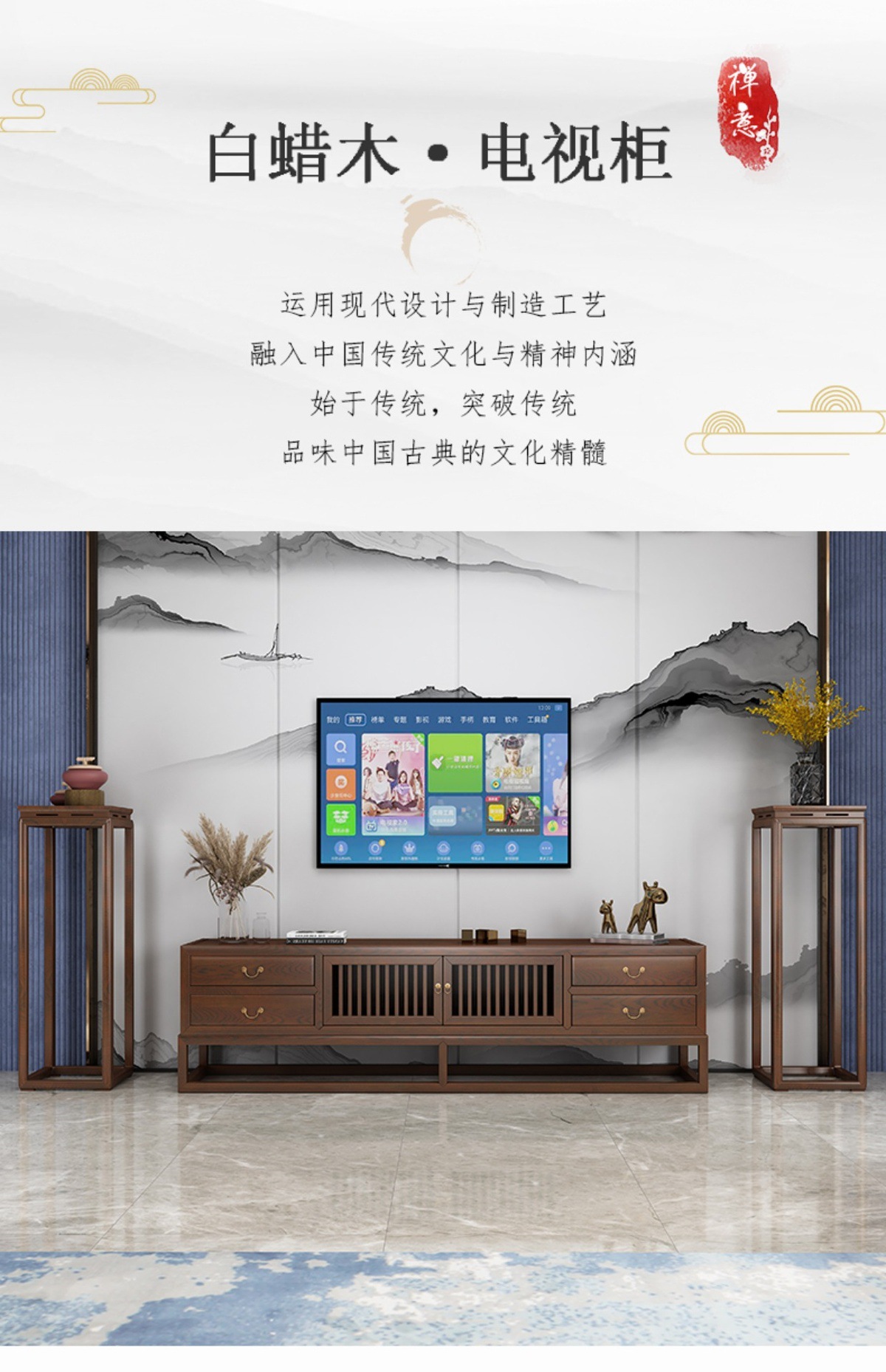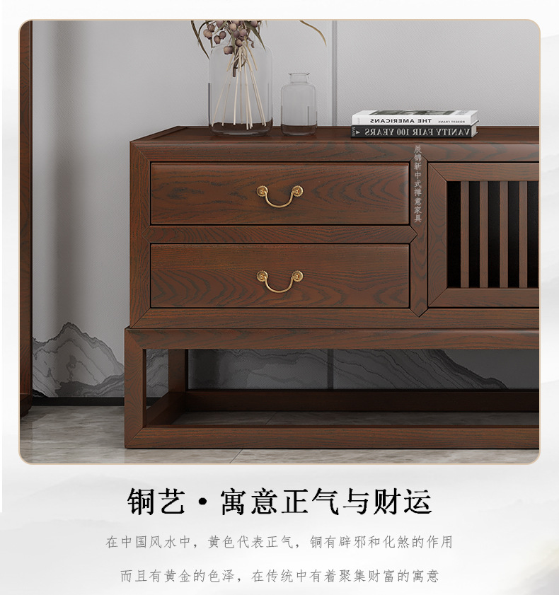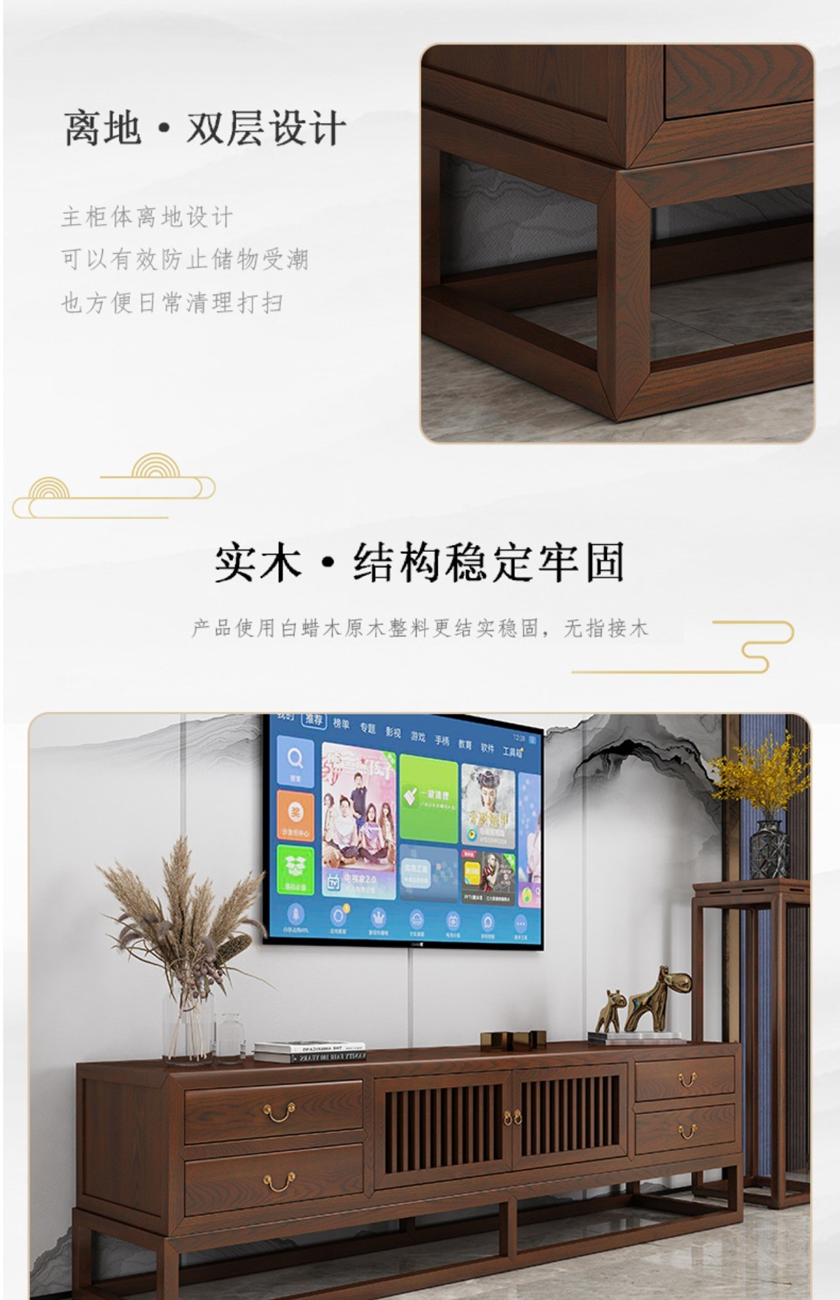 新しい中国風の無垢材テレビキャビネット家庭用アッシュ材フロアキャビネット禅B&B小さなアパートのリビングルーム環境に優しいほぞ穴家具