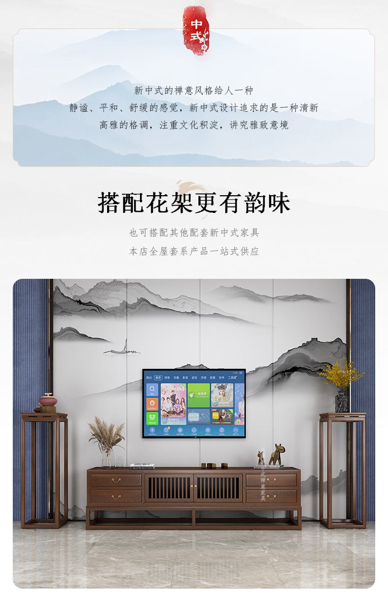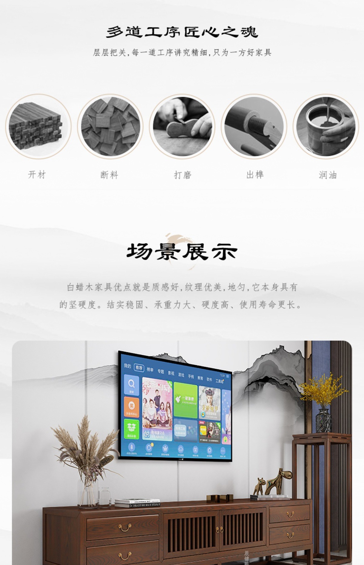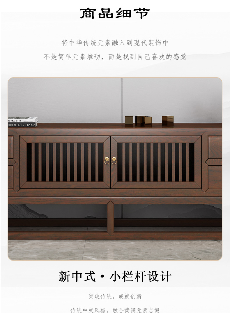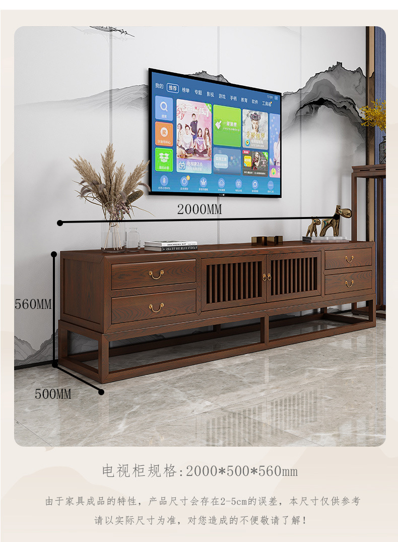 新しい中国風の無垢材テレビキャビネット家庭用アッシュ材フロアキャビネット禅B&B小さなアパートのリビングルーム環境に優しいほぞ穴家具