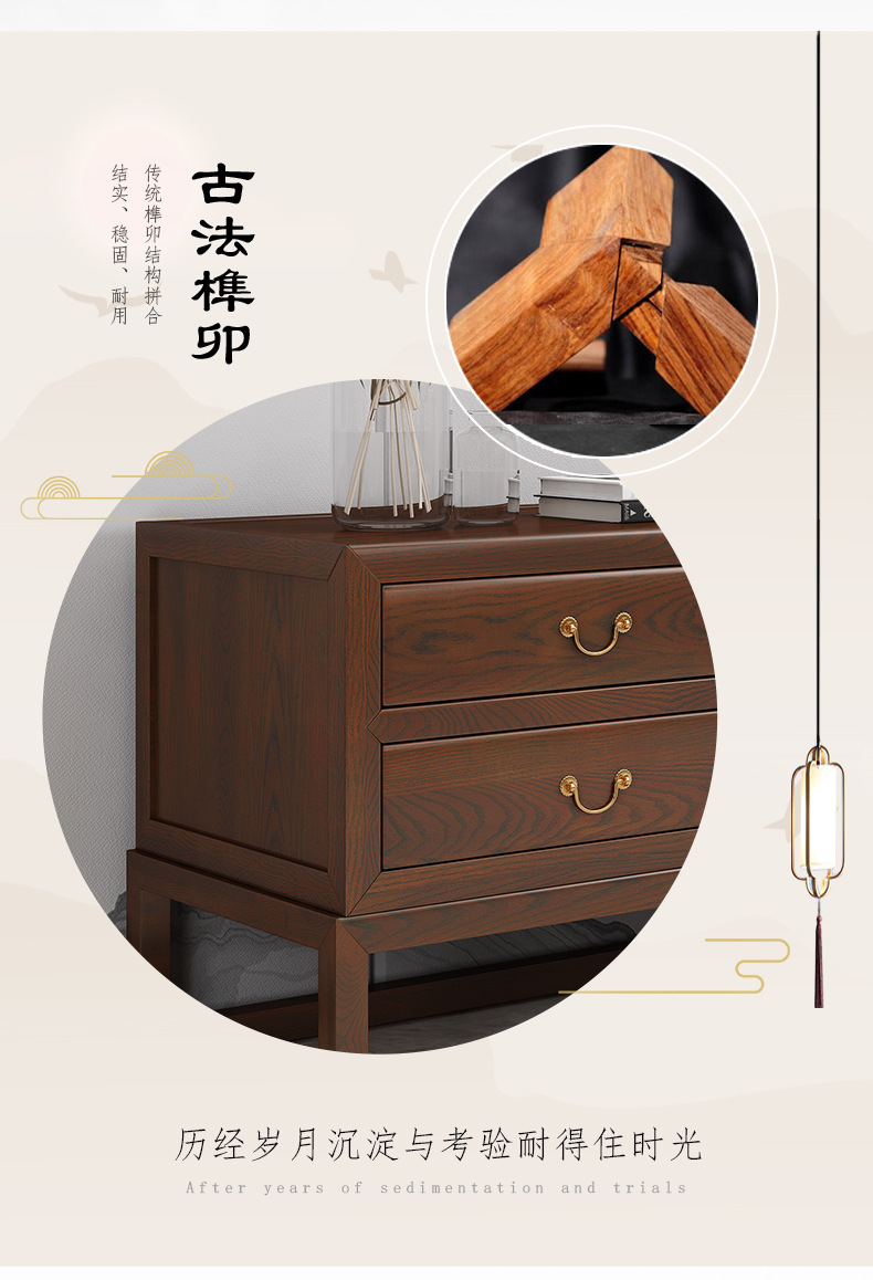 全無垢材の新しい中国風アッシュベッドライト高級マスターベッドルームウェディングベッド 1.95m ハイボックスベッド大型ヴィラ高級家具