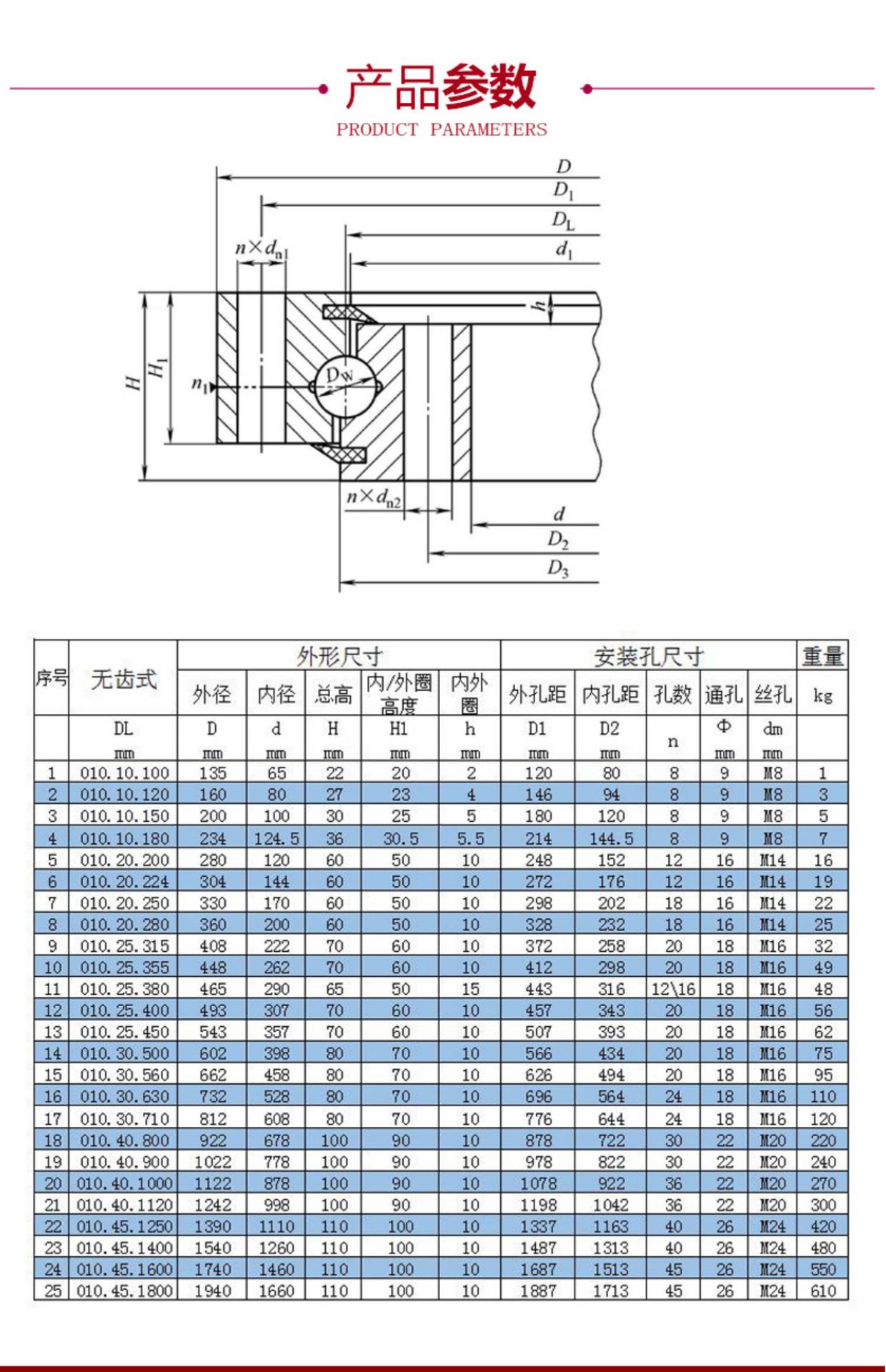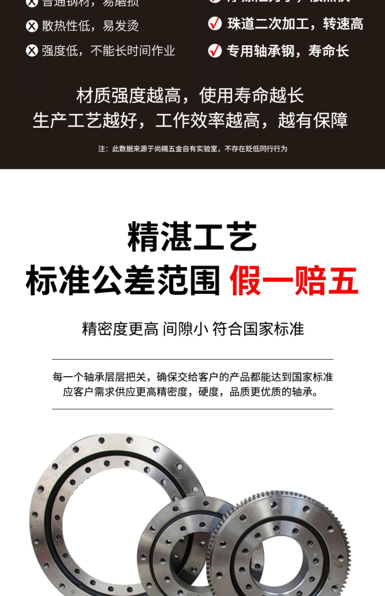 歯なし旋回ベアリング メカニカルアームベース ターンテーブルベアリング 小型クレーン旋回ベアリング ピニオン歯車 単列スポット