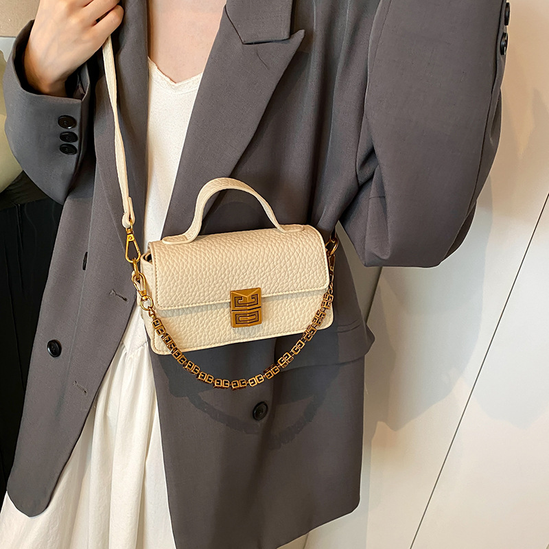 レトロな高級感チェーンハンドバッグ レディース 2025年新作 おしゃれなソフトレザー ライチ柄 小さめスクエアバッグ ショルダーバッグ/脇に抱えるバッグ