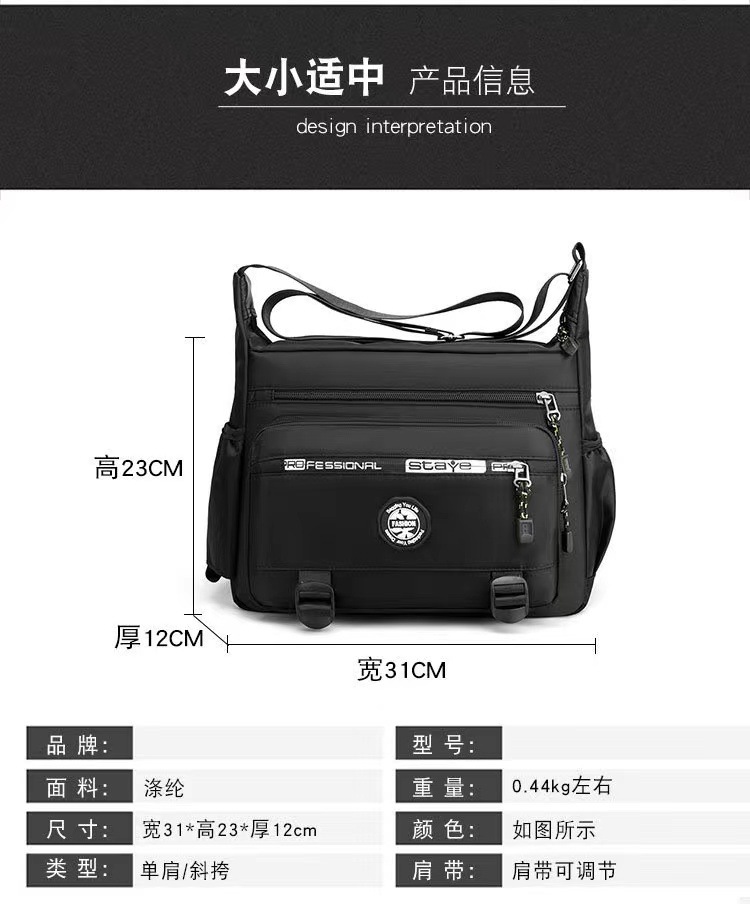 大容量男包单肩包防水耐磨背包多口袋做生意包商务休闲男士斜挎包
