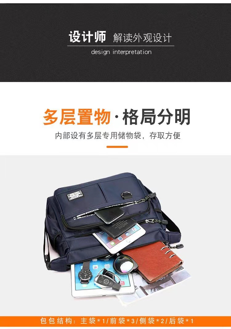 男性用カジュアル大容量ショルダーバッグ新型軽便オックスフォード布百多層旅行通勤ビジネスショルダーバッグ