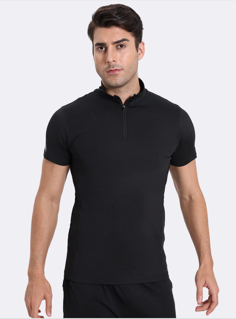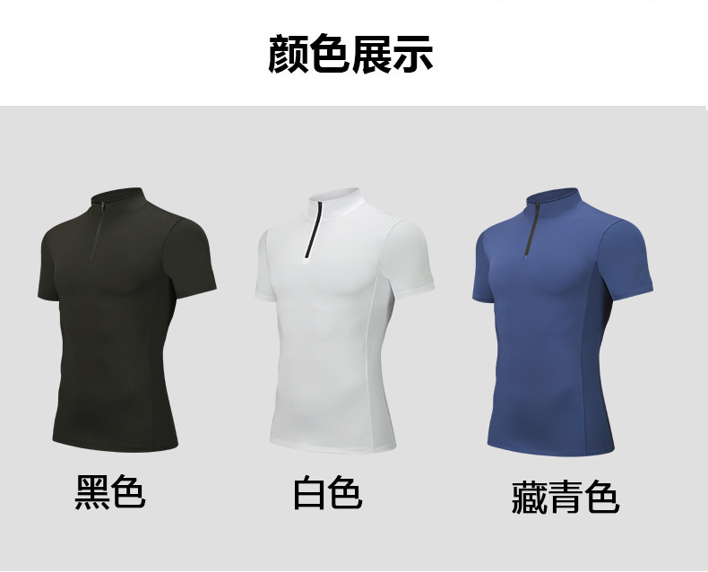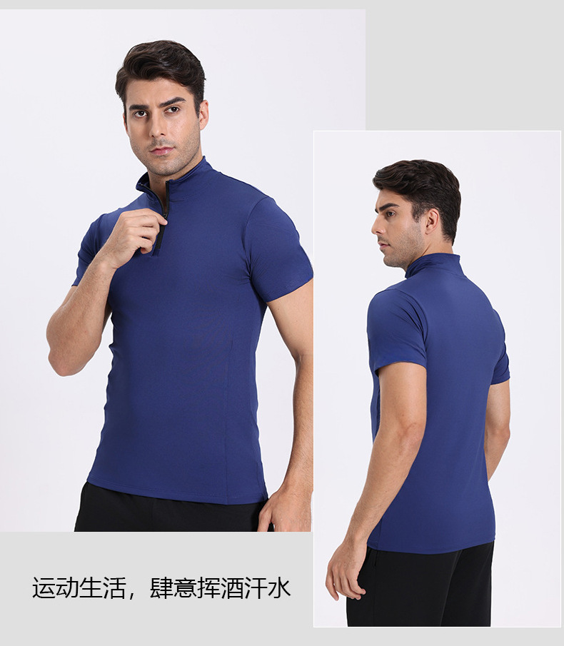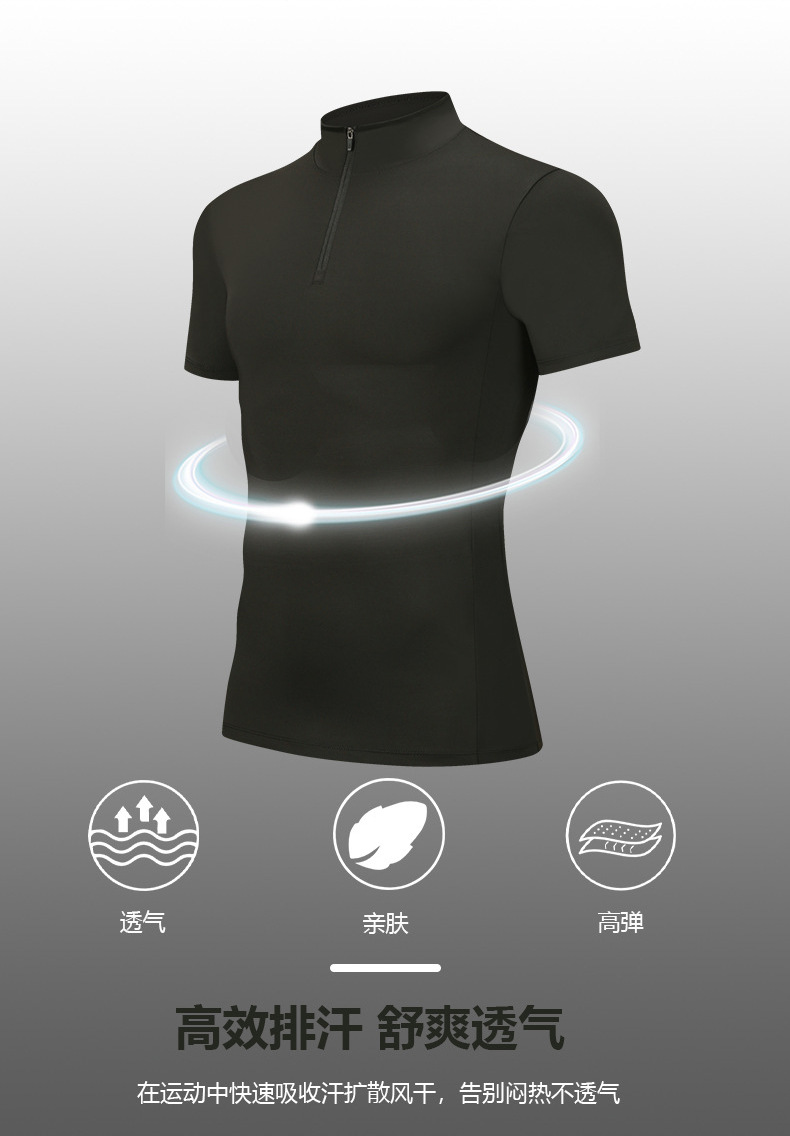 通気性のある半袖ポロシャツ、襟付き、メンズ、ハーフジップ、タイトフィット、速乾性、スポーツウェア、フィットネスウェア