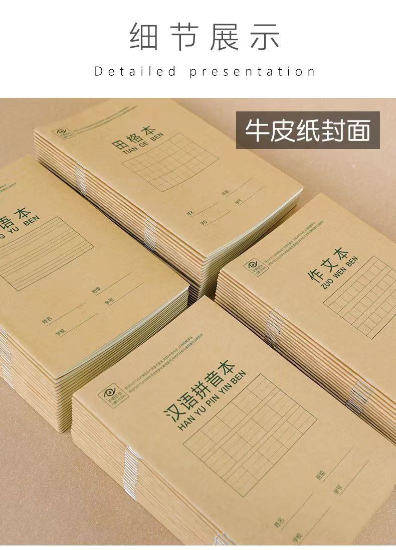 デリ D3620 クラフト紙ピンインブック 小学生向け統一標準フィールドグリッド生語数学算数