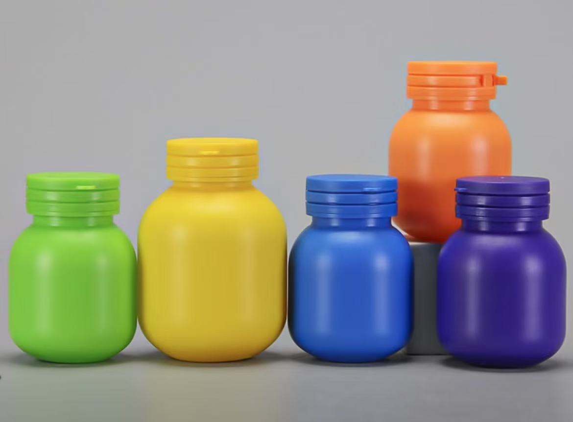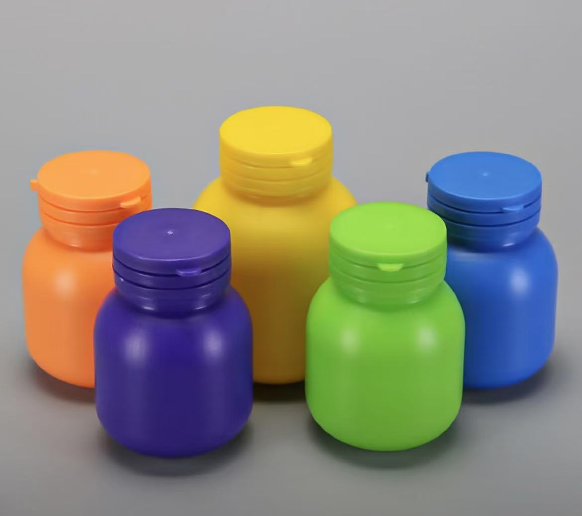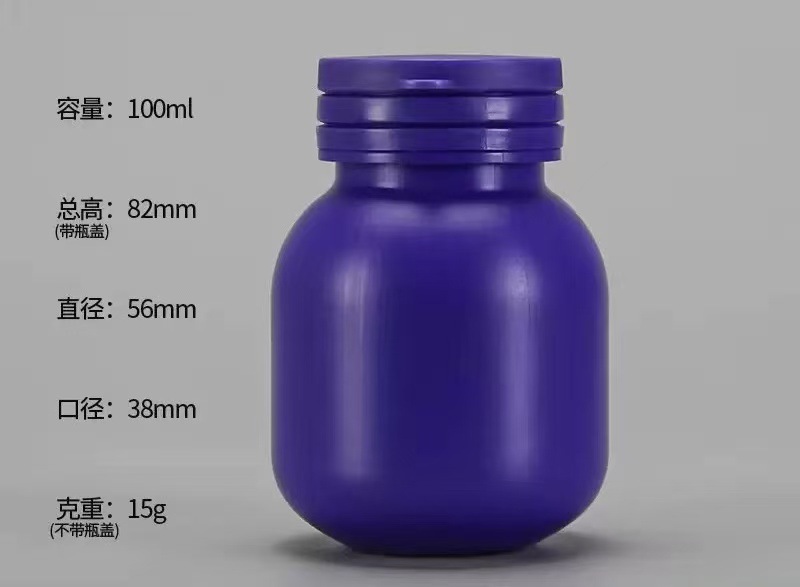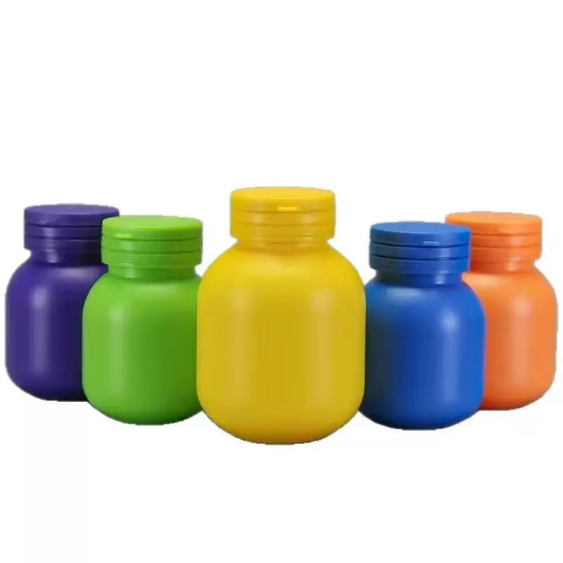 100mlカラーPETポリエステルボトル、ペットカルシウム錠カプセルボトル、ティアオフキャップ電球ボトル、PETフリップトップビッグベリーボトル