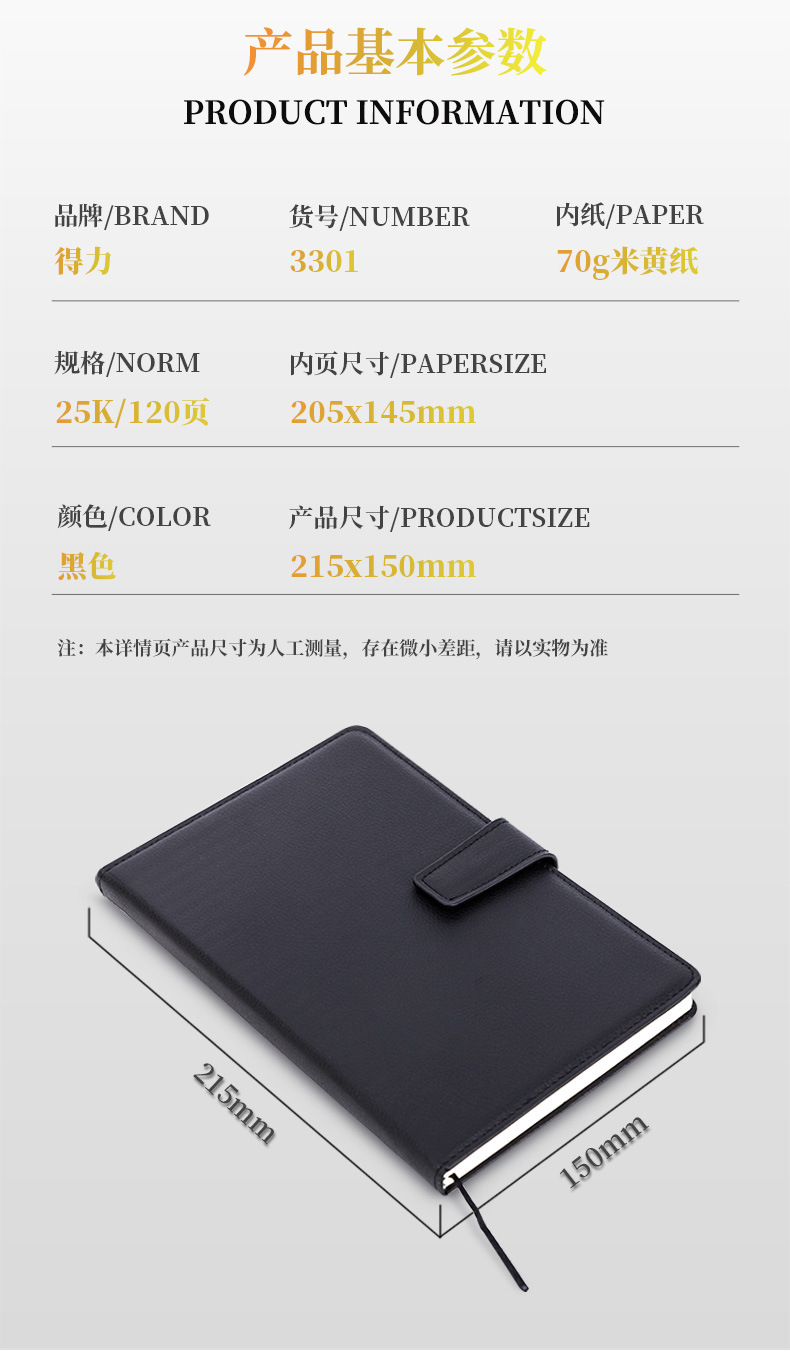 デリ 3301 レザーノートブック厚みのあるメモ帳ビジネスブラックレザーワークミーティング記録帳