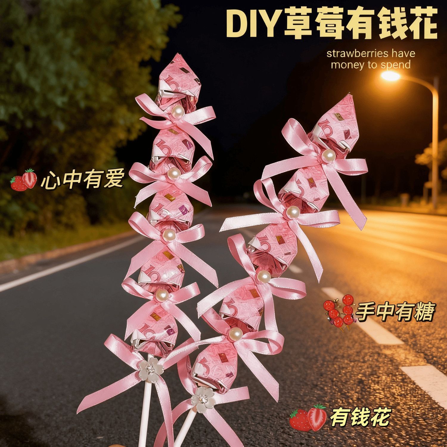 创意小众草莓糖葫芦有钱花摆件diy材料包圣诞节生日送朋友礼