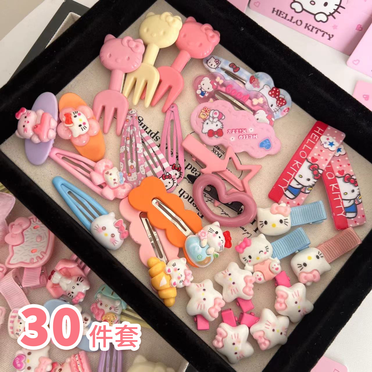 漫画Kitty猫ヘアピン30点セット百合髪飾りお姫様ヘアピンセット子供かわいいヘアピン収納袋