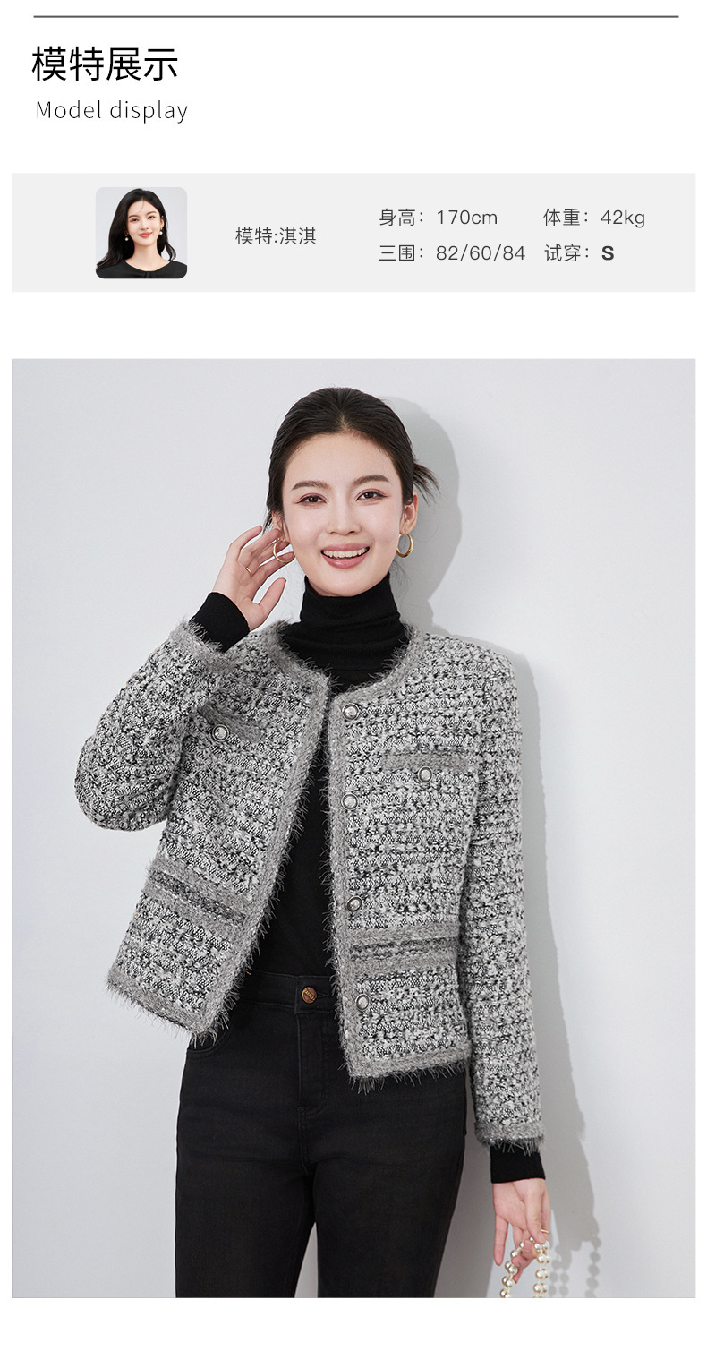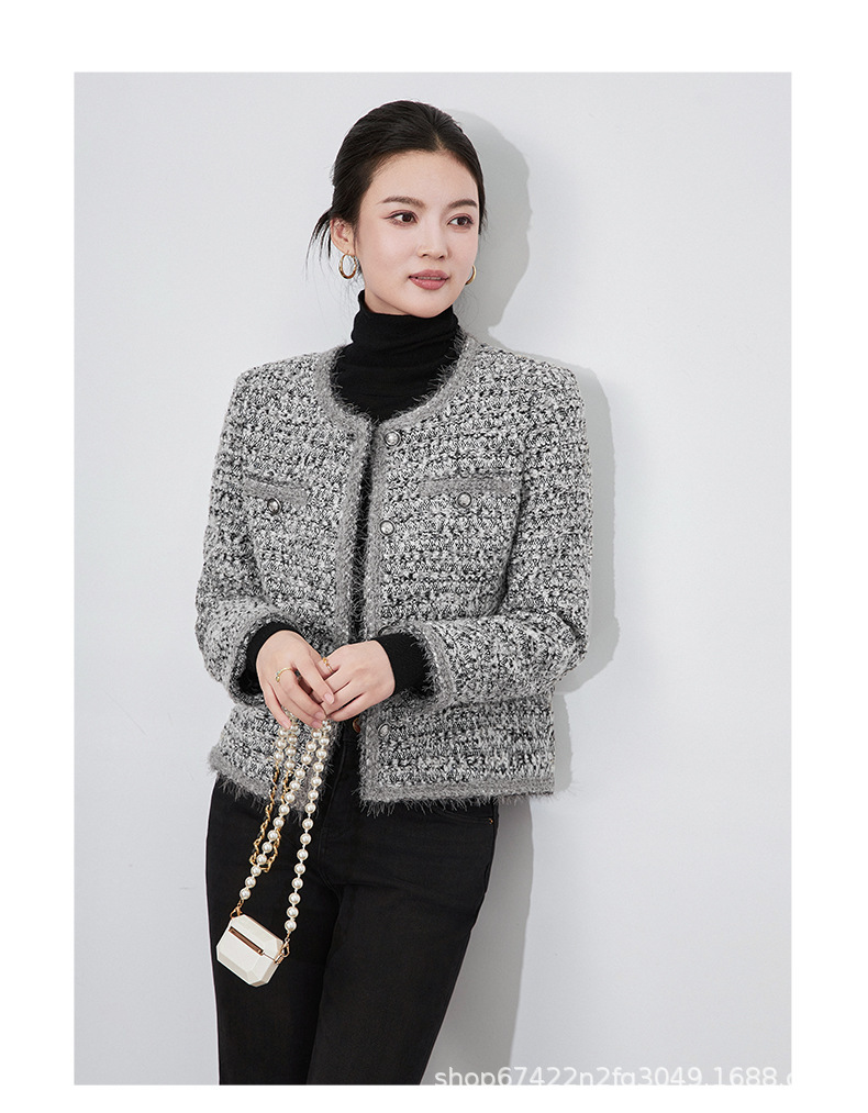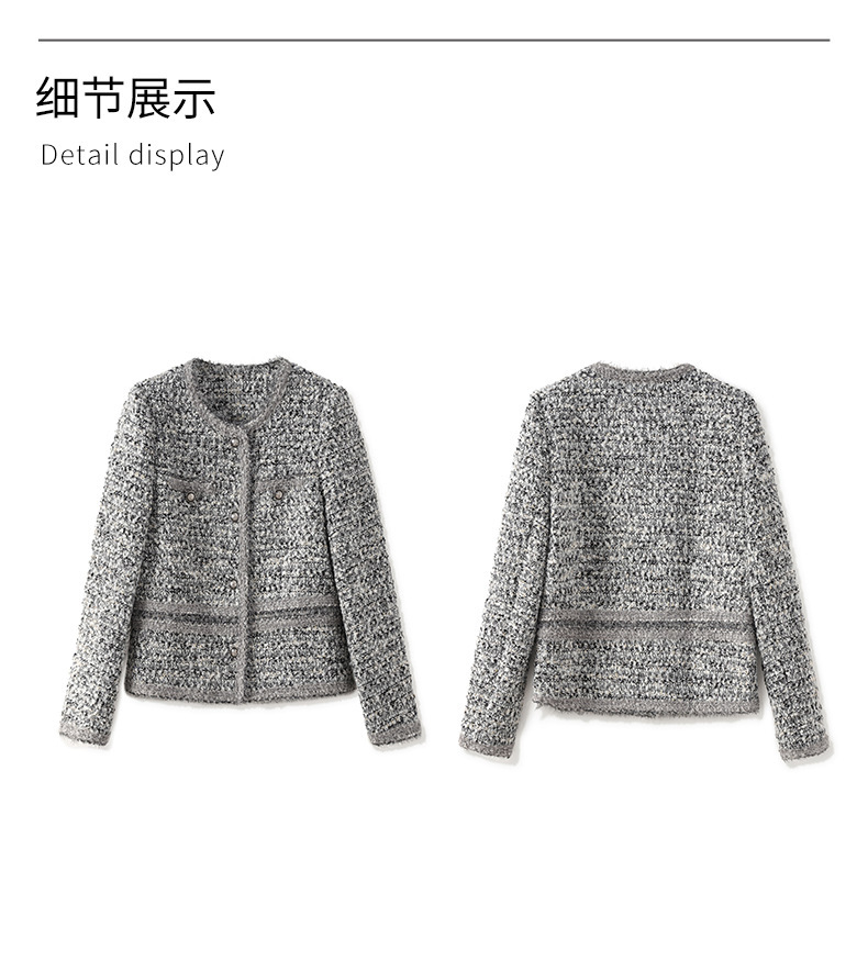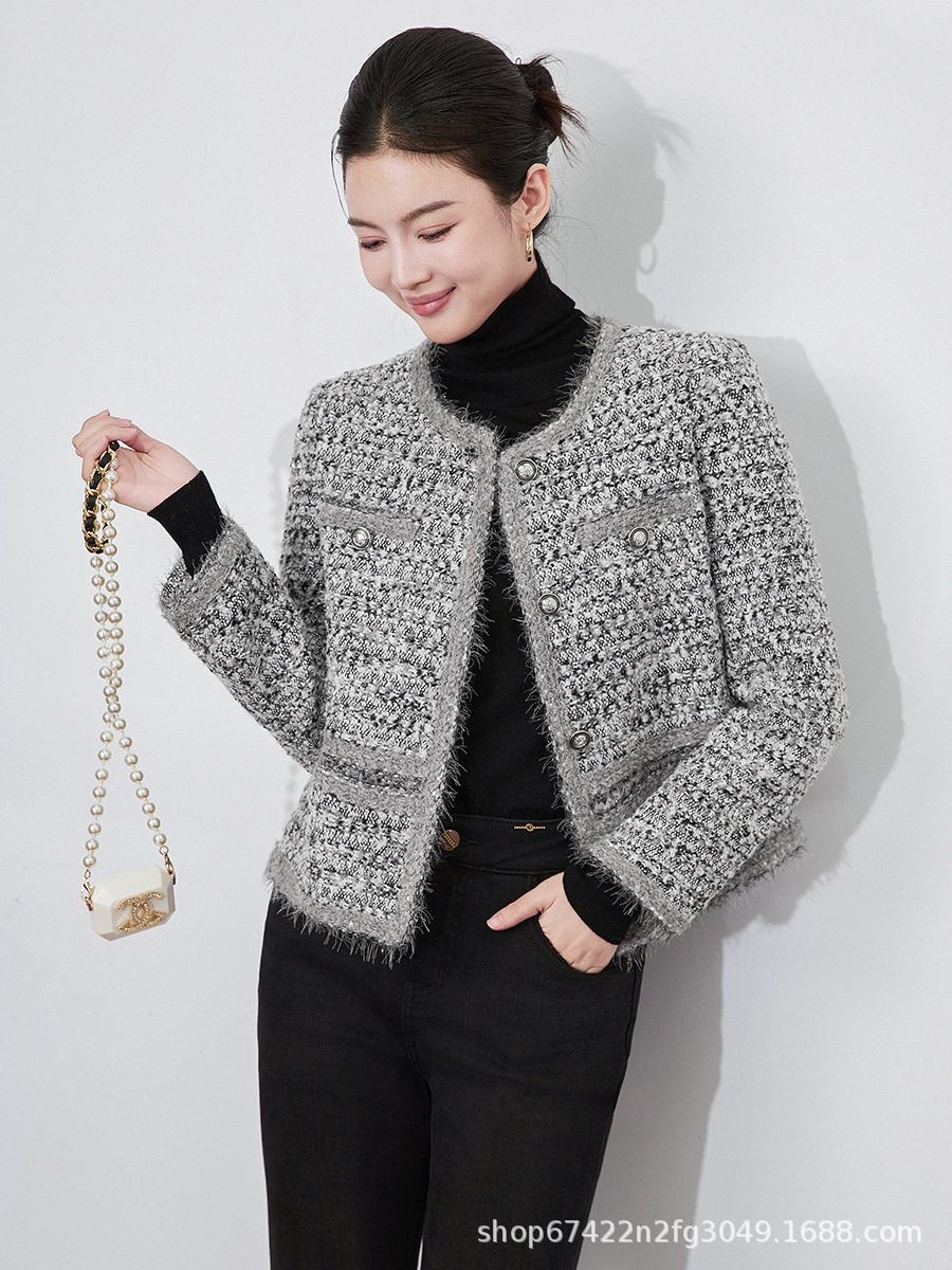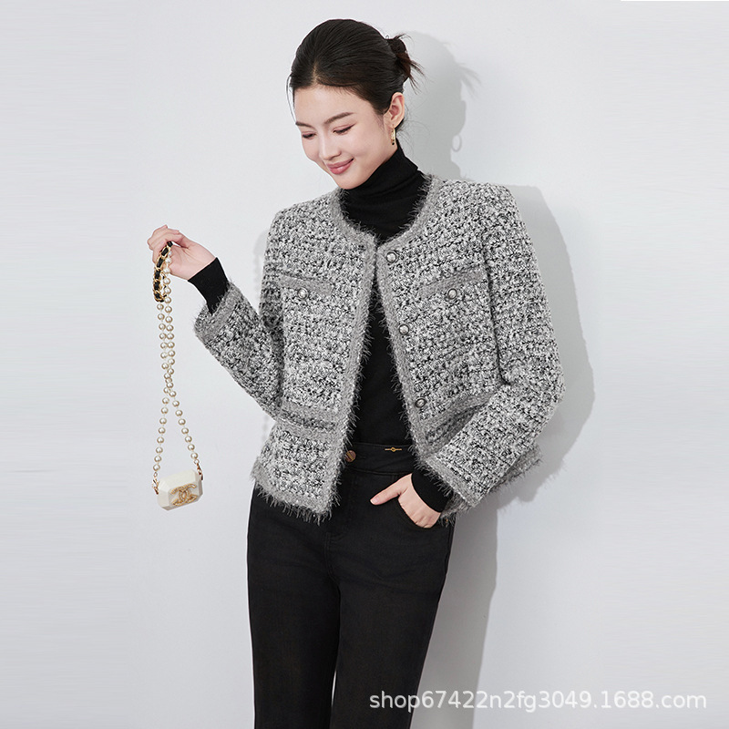 2025秋冬霜雪恋人高級B級重工織り小香風粗花呢ショートジャケットラウンドネック優しい女性向け新作