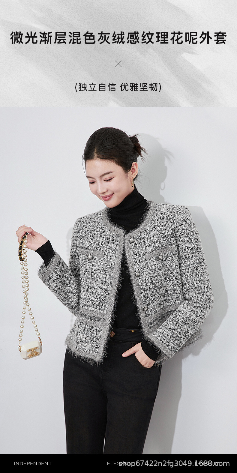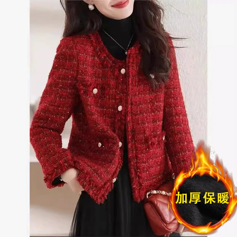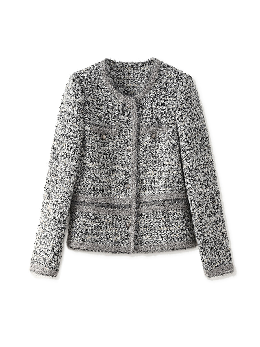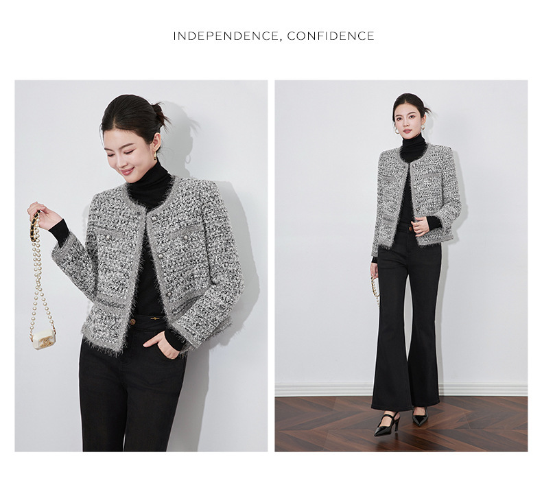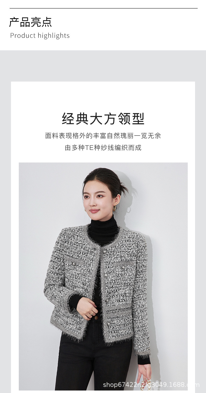 2025秋冬霜雪恋人高級B級重工織り小香風粗花呢ショートジャケットラウンドネック優しい女性向け新作