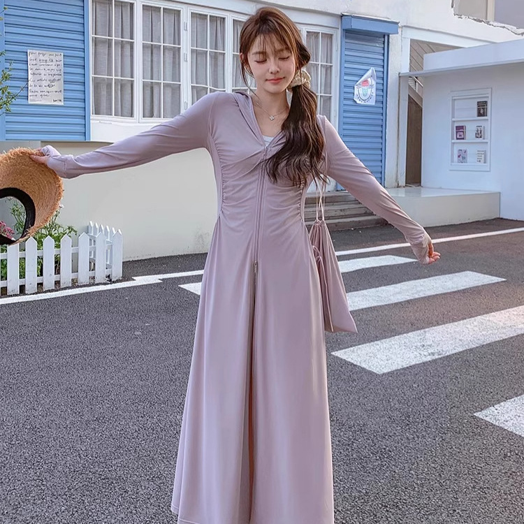 女性用アイスシルク日焼け止め服、ロング全身フード付きウエスト、夏用軽量、通気性、抗UVスリム日焼け止めスカート