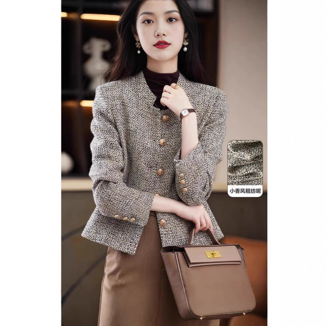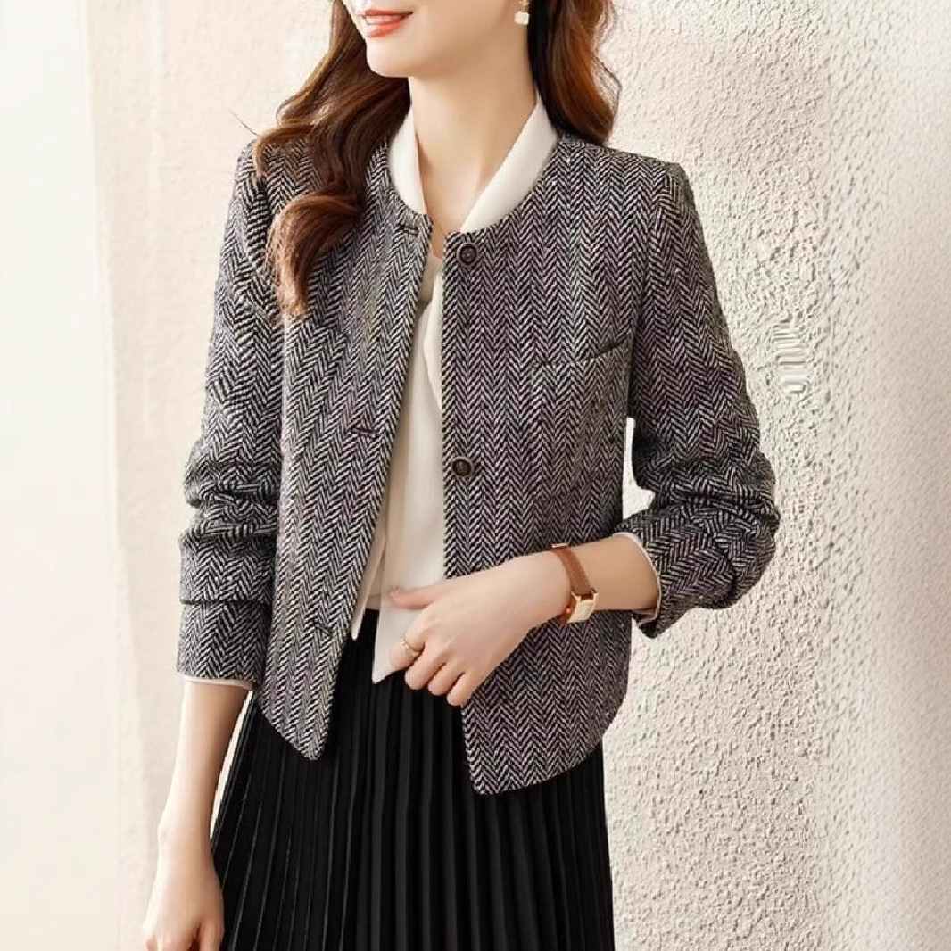 女性のための新しいスタイルの香りのジャケット 2025 シンプルなハイエンドのショートジャケットレトロヘリンボーン柄ルーズウールトップ