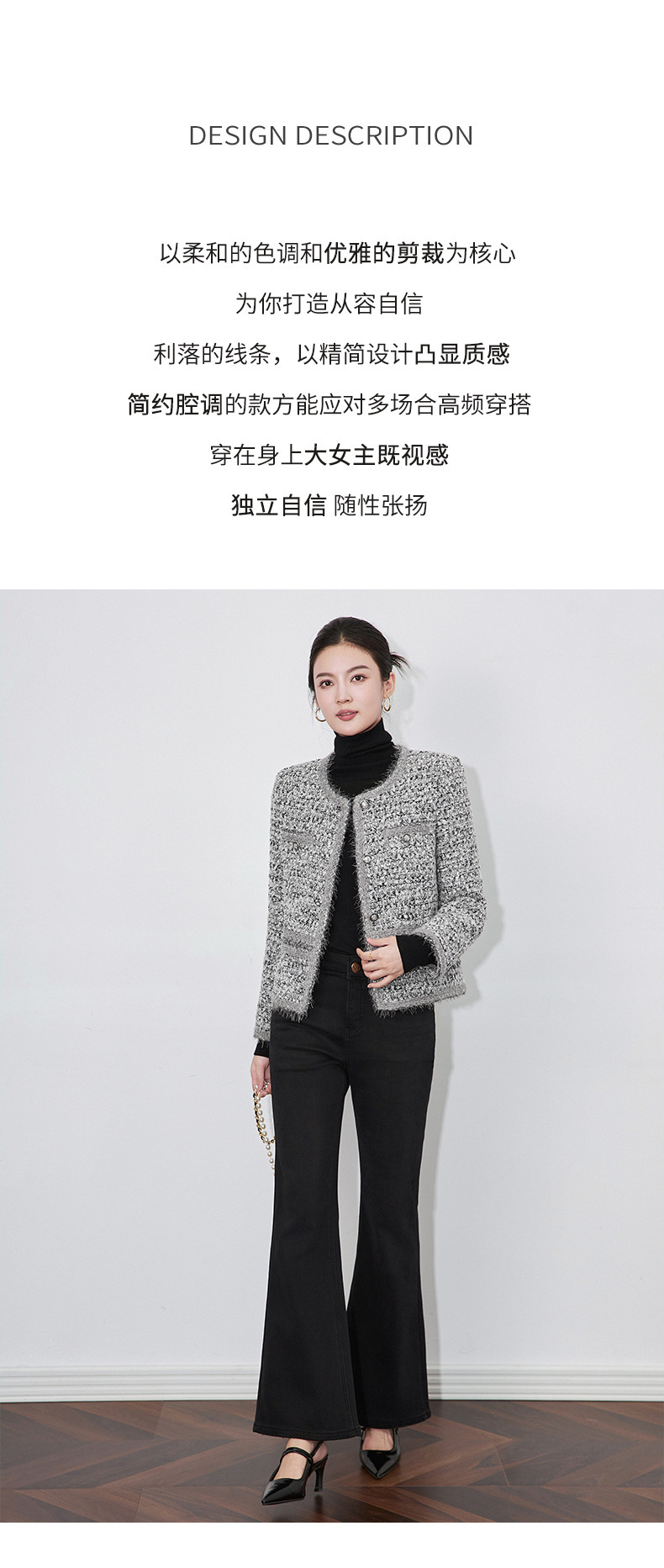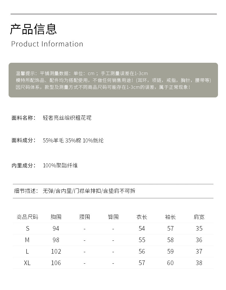 小香風コートの女性は太いですね。2025秋冬の新型通勤スタンドカラーのデザイン感があります。