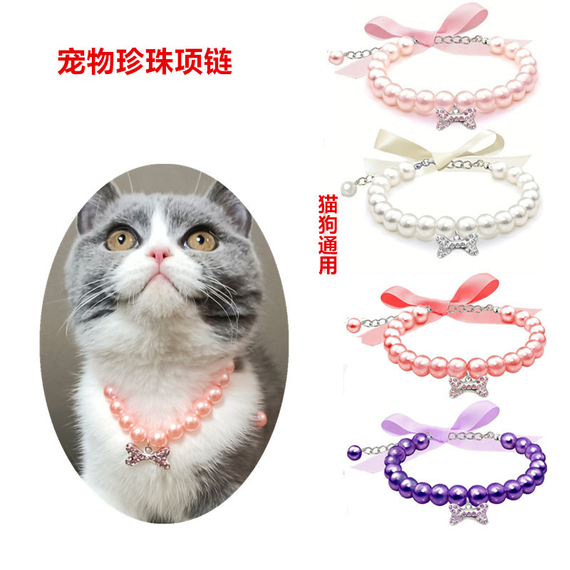 メーカー直販ペットアクセサリー真珠ネックレス猫犬首輪骨ペンダント中小型犬クロスボーダー電気商