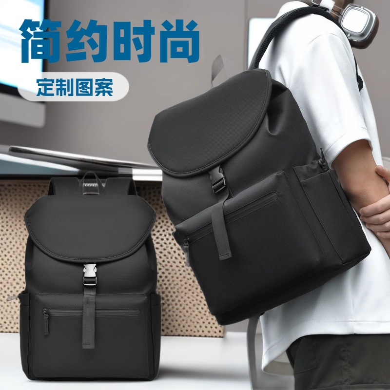 新款防水双肩背包男士学生休闲大容量电脑包时尚商务包翻盖式背包