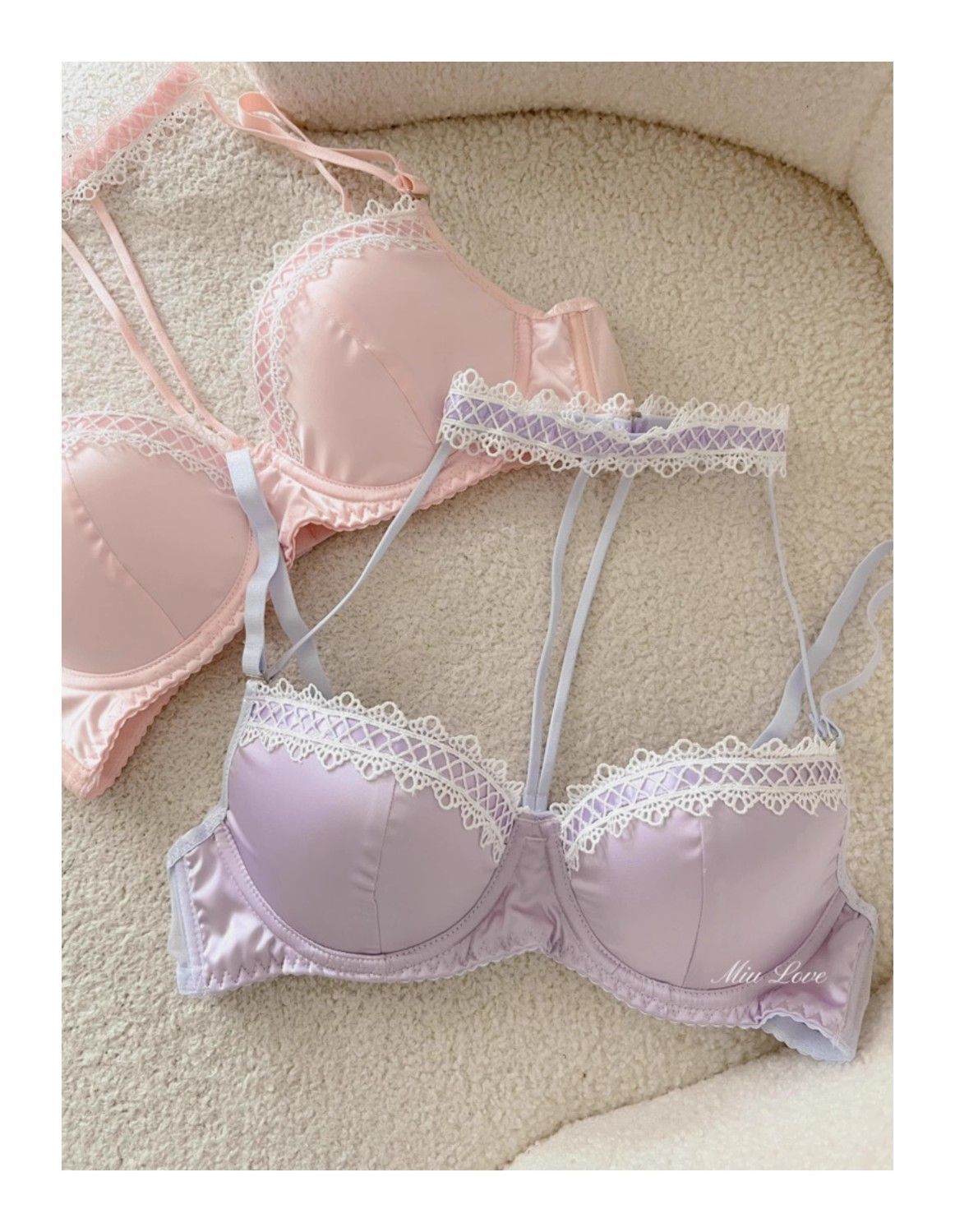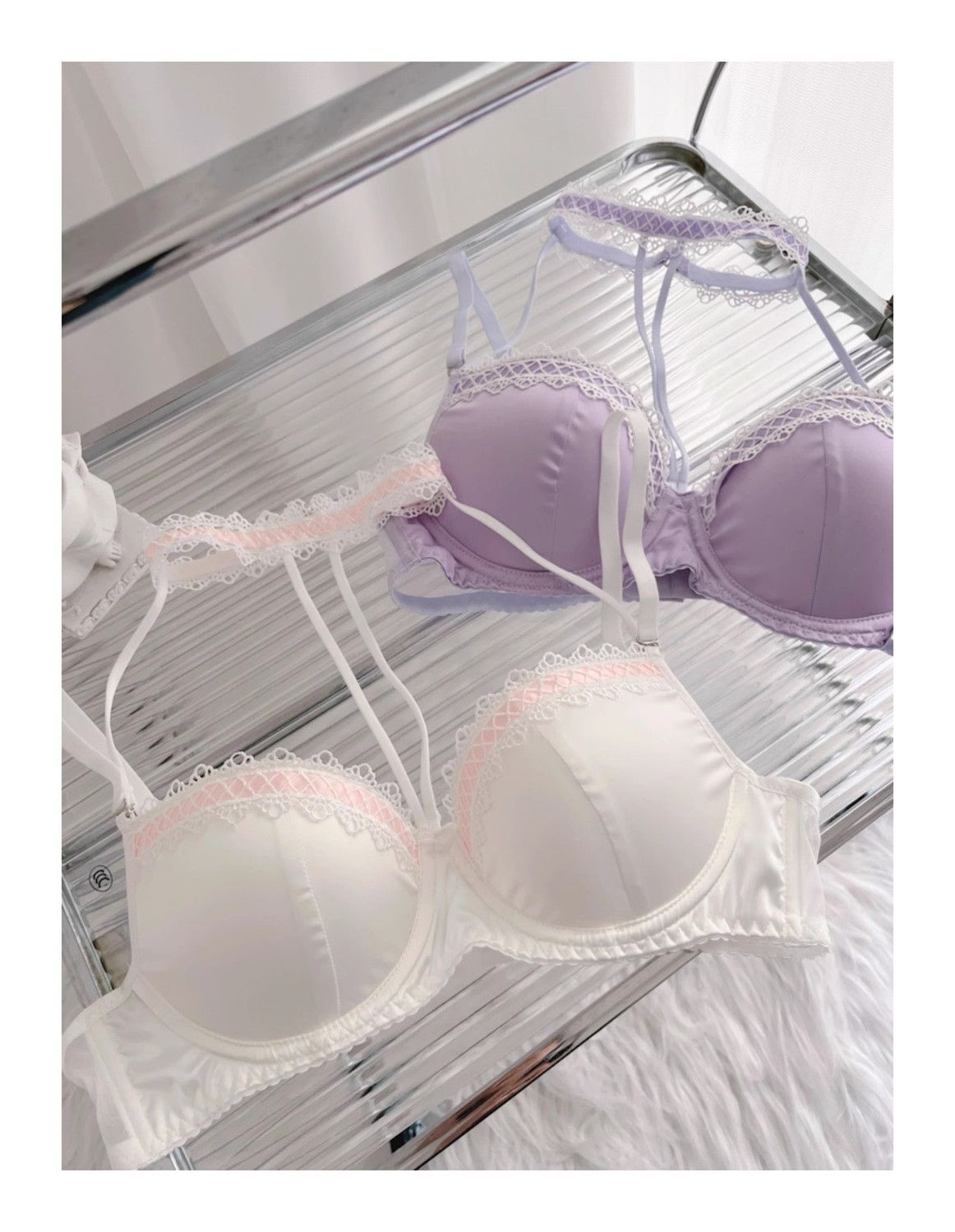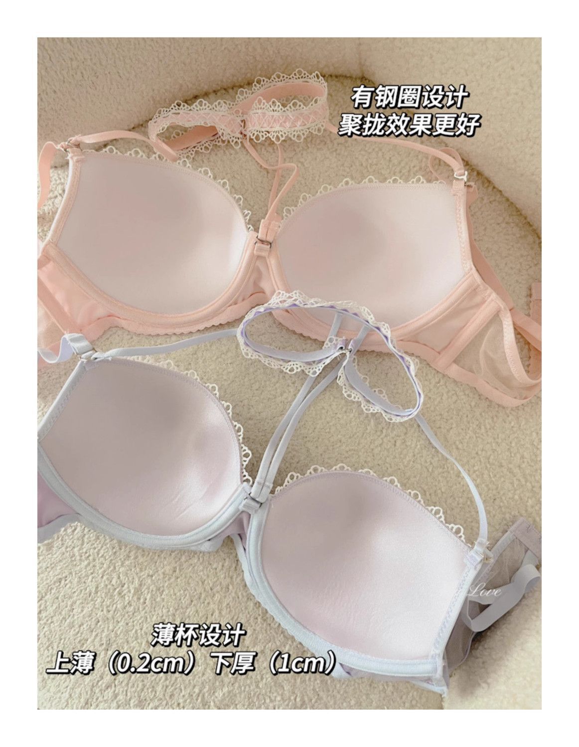 新しい甘い純粋な欲望ホルターネック薄いストラップ首輪アウターウェアとインナーウェアサテンレースプッシュアップガールブラセット