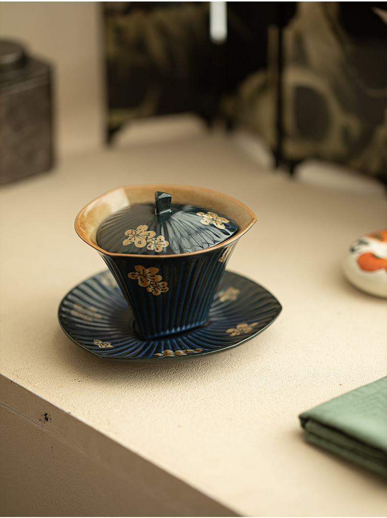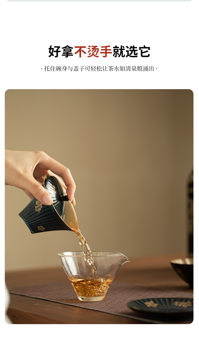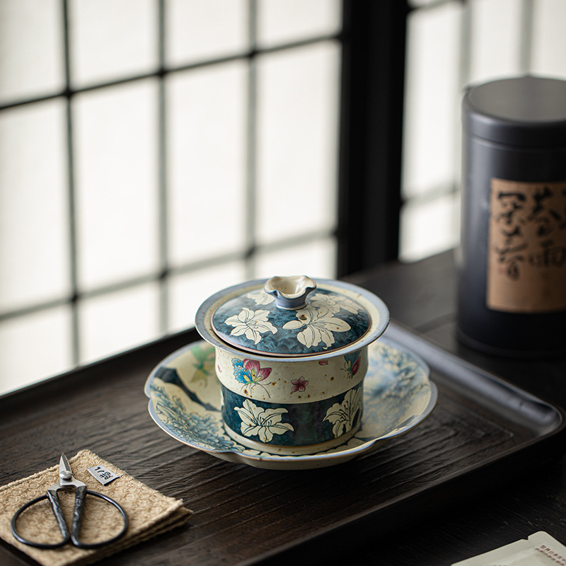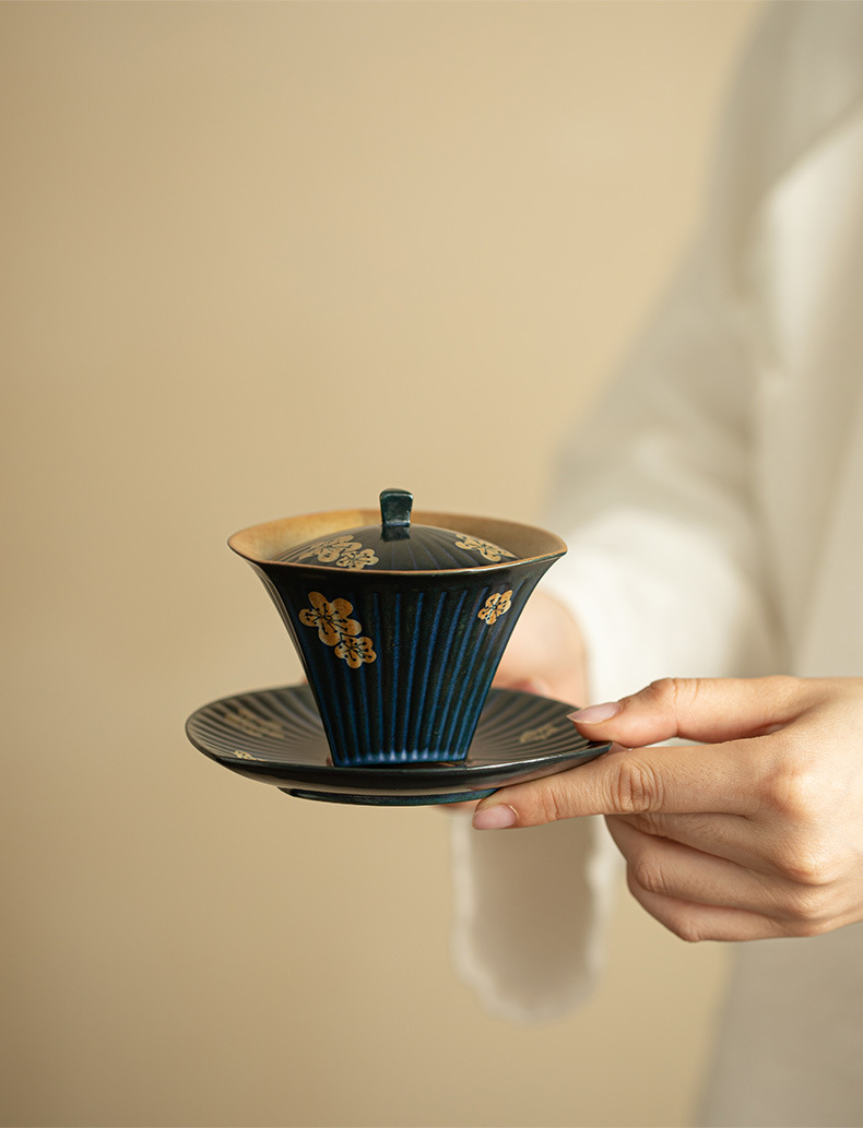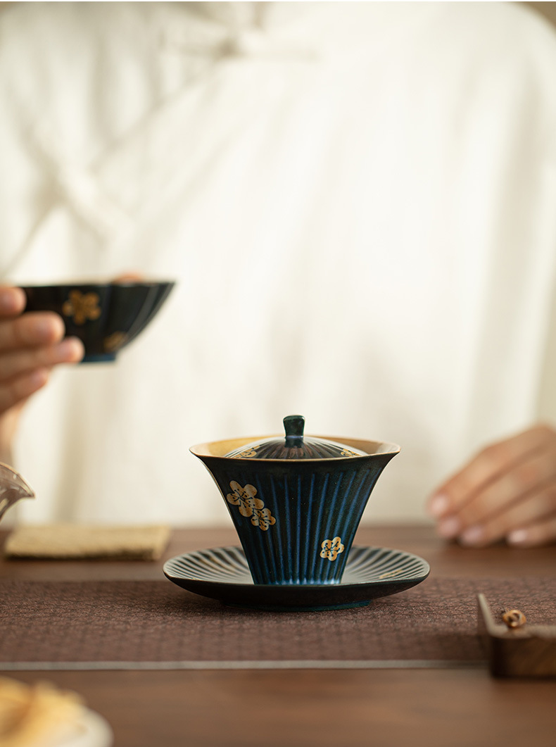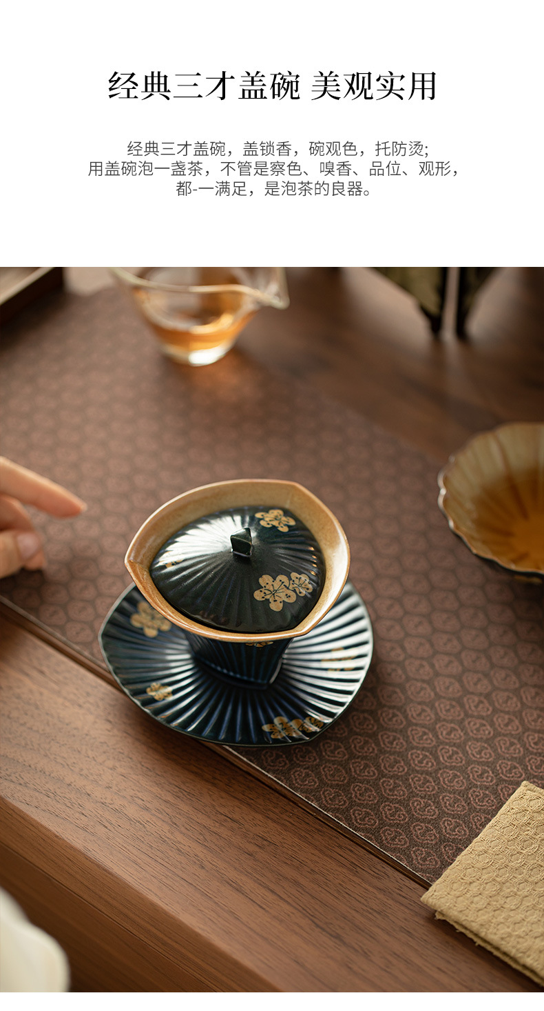 柴焼岩鉱三才蓋碗岩鉱茶杯景徳鎮蓋杯創意工夫茶具主泡茶器