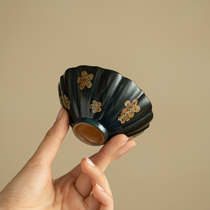 汝窯墨竹開片茶杯陶磁器茶具品茗杯主人杯客杯単杯茶専用工夫茶具