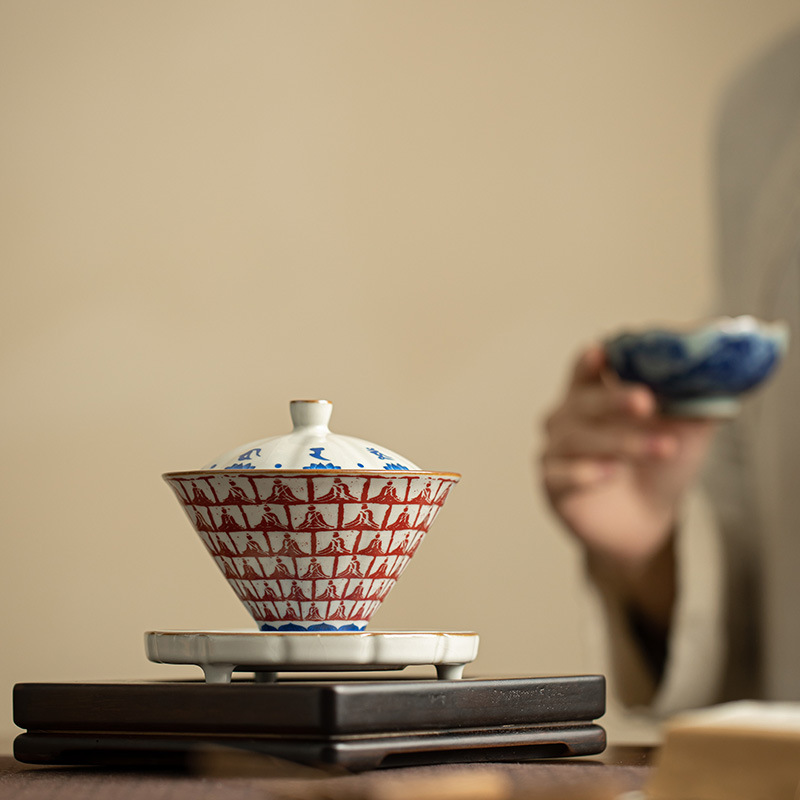 景徳鎮の陶磁器の拓片の飛天敦煌は碗の工夫のお茶の杯の3才をかぶせて碗の笠の馬蹄をかぶせます。