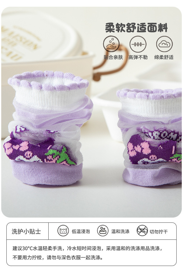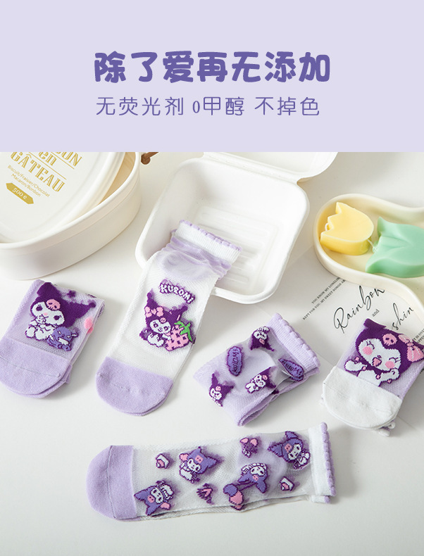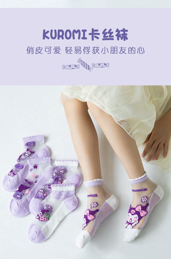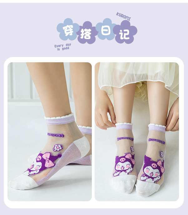 夏季薄款儿童棉袜水晶丝袜网眼透气冰丝女童袜可爱库洛米玻璃丝袜