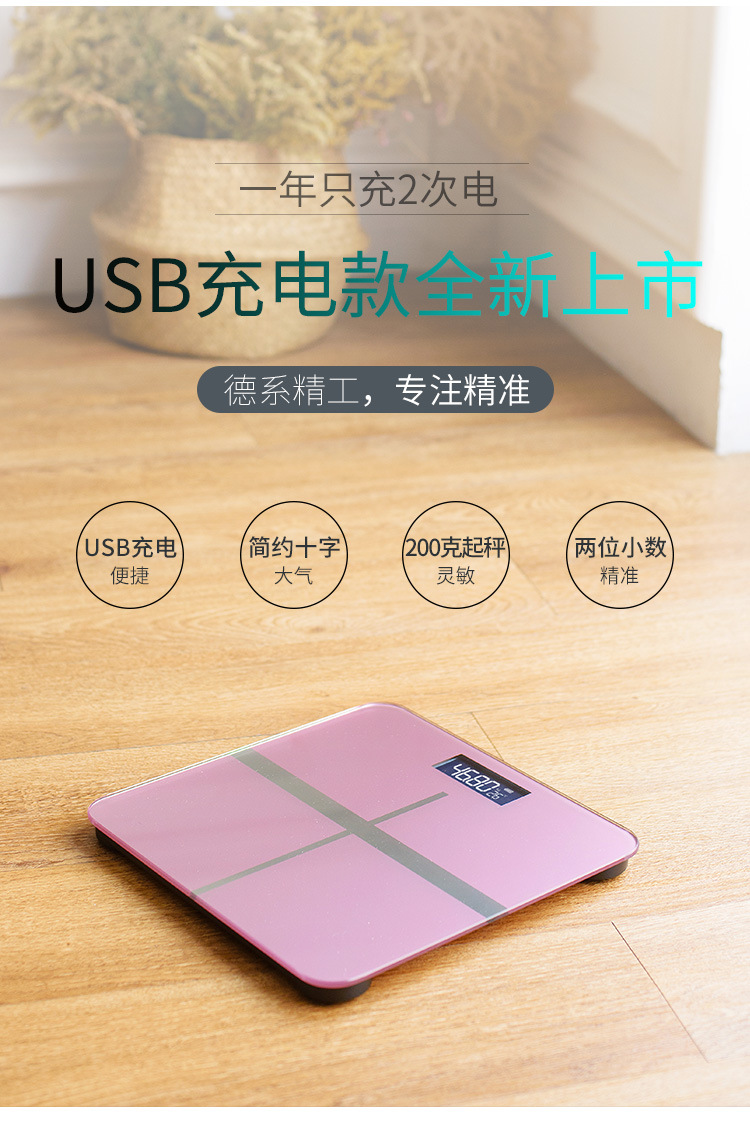 クロスボーダー白秤体重計家庭用計量電子秤減量体重計充電金体重計代理卸売り