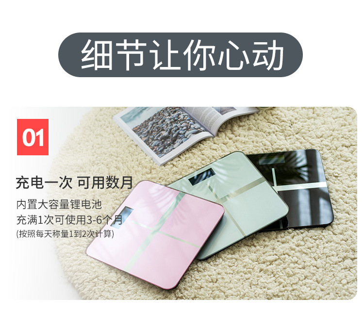 工場直販スクエアシンプル家庭用高精度耐久性正確な計量インテリジェント充電電子体重計