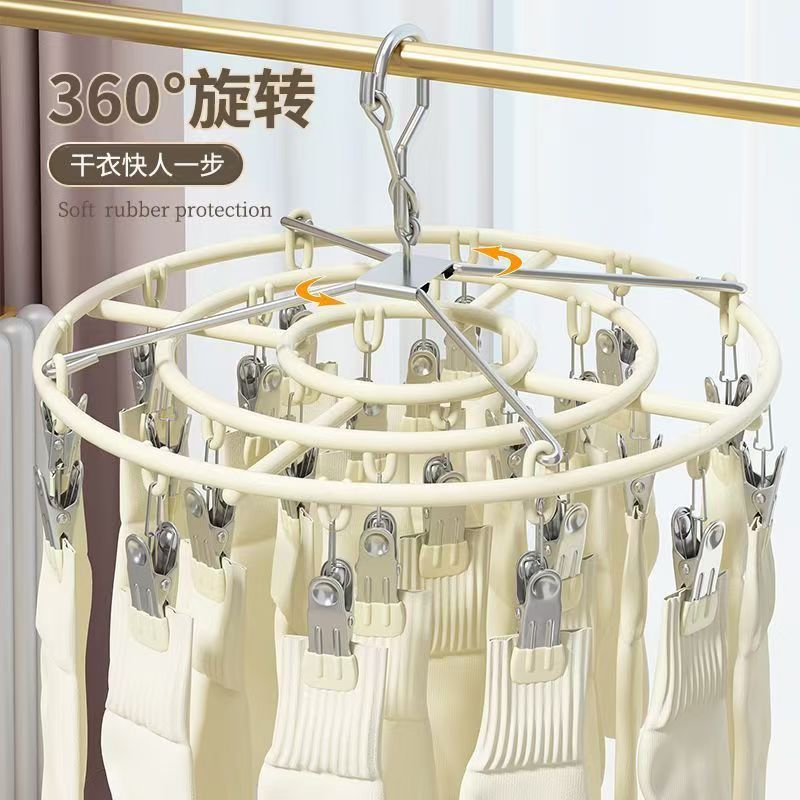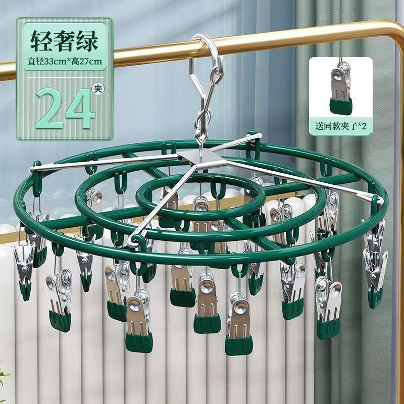 家用晒袜子晾衣锈钢多夹子圆盘挂婴儿功能内衣内裤阳台神器