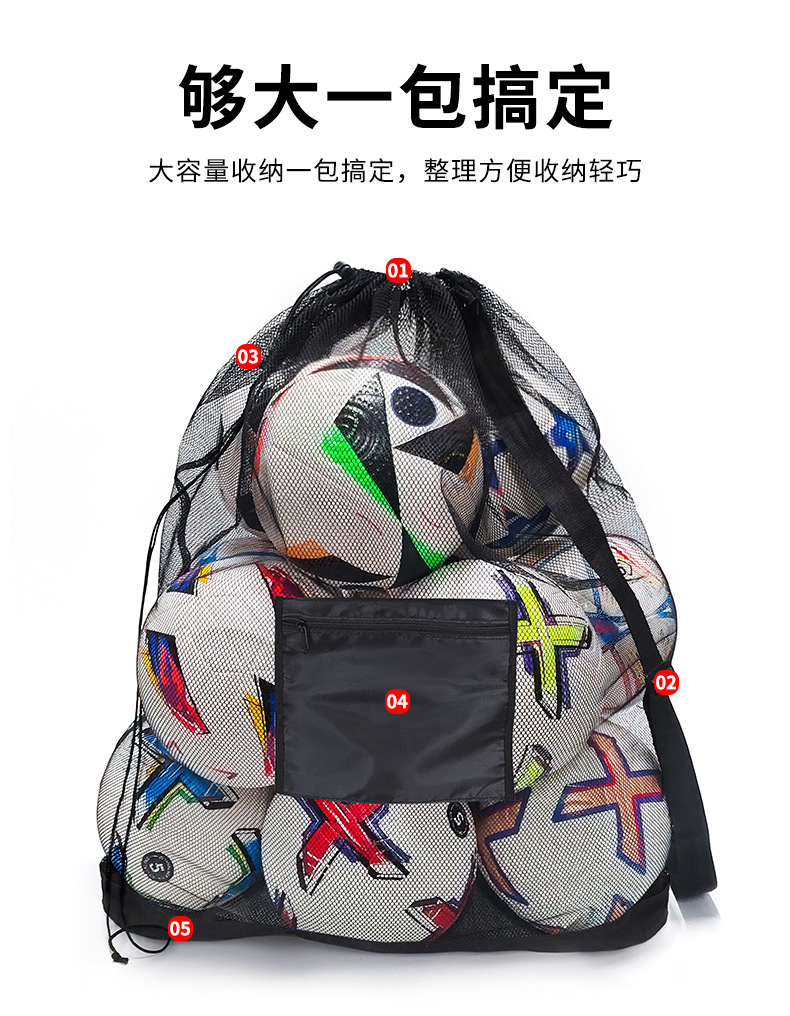サッカーバッグのネットはバスケットボールのバレーボールを包んで訓練します。