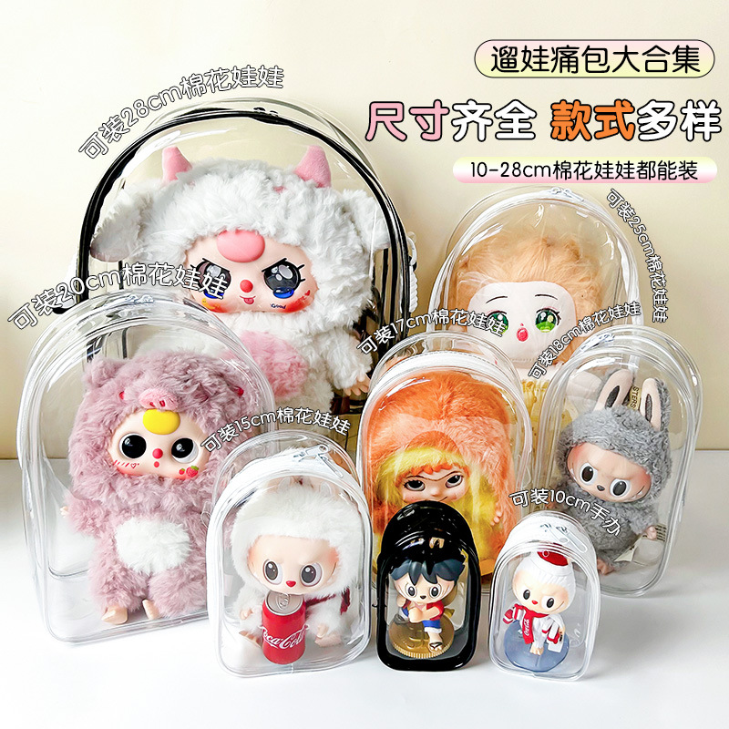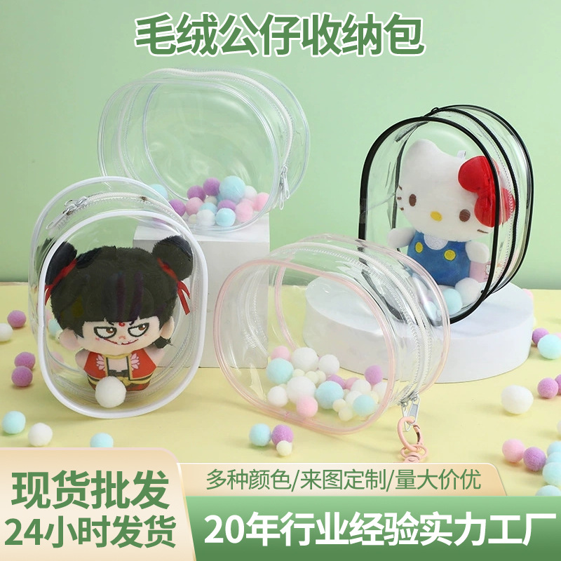 毛绒公仔收纳包15cm加宽椭圆娃包PVC透明包防水遛娃包防尘保护套