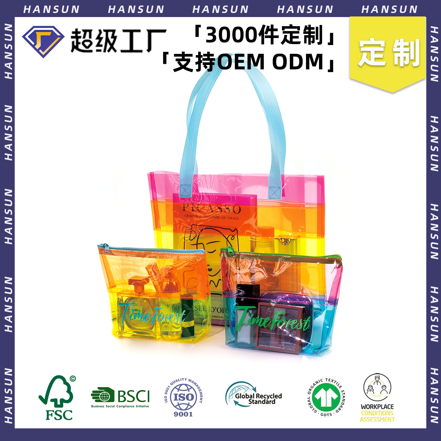 カスタム半透明虹色ファッションビーチバッグPVCプラスチック手提げ袋トートバッグ