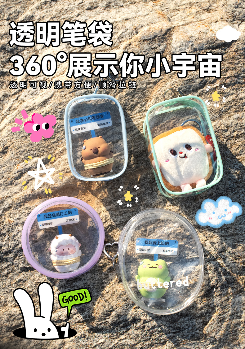 カスタムPVCバブルマート子供用バッグ、痛バッグ、透明ジッパーバッグ、フィギュア展示バッグ、インスタ風収納バッグ