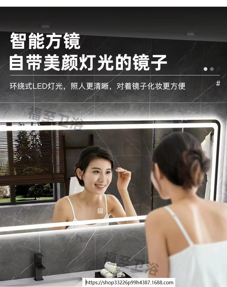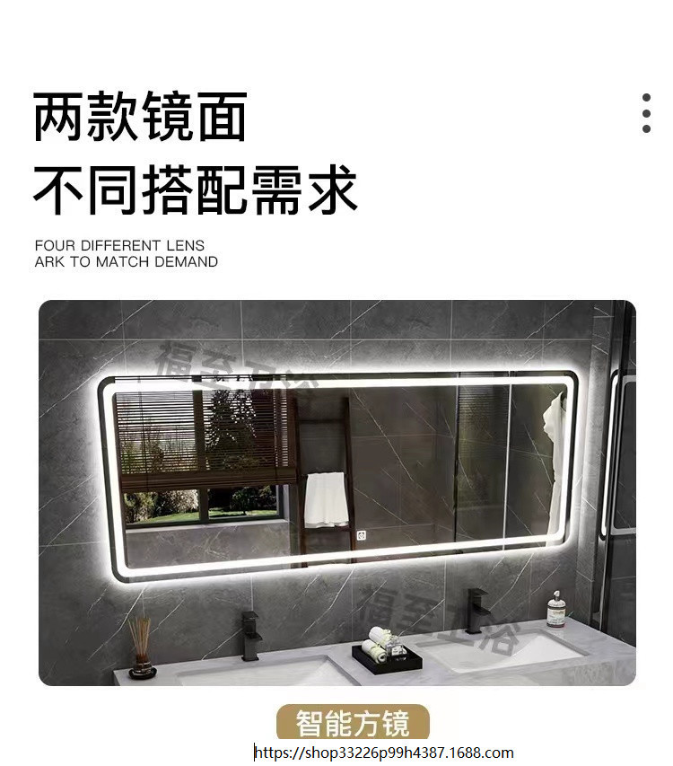 スマート単独鏡棚トイレ壁掛け式物置棚実木浴室ロッカー化粧鏡ランプ付き収納棚