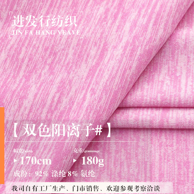 涤氨纶阳离子双色汗布赤离子拉架弹力速干阳离子面料运动T恤布料