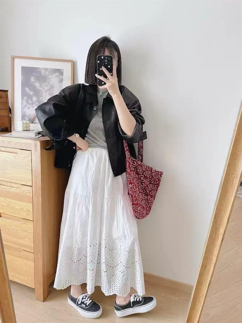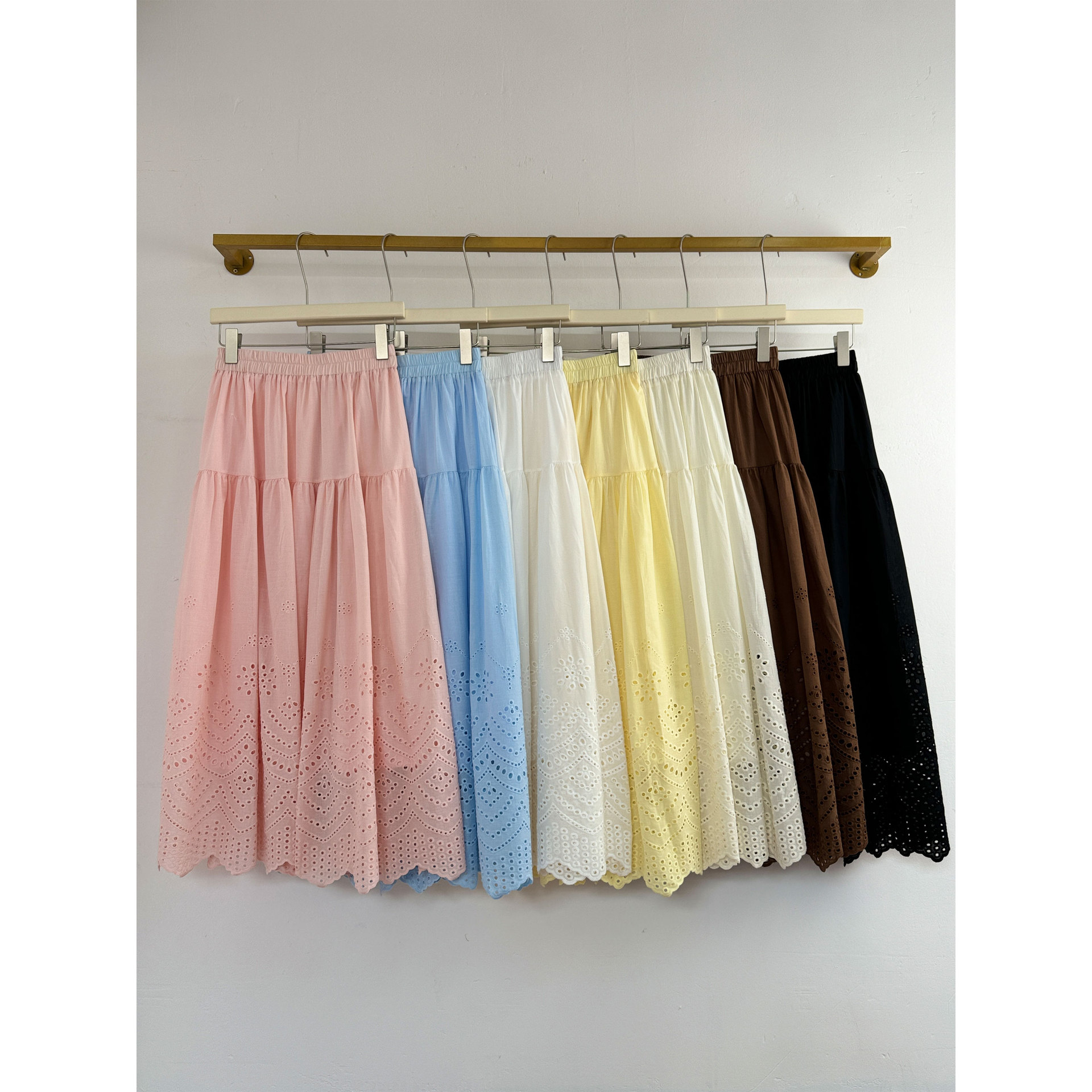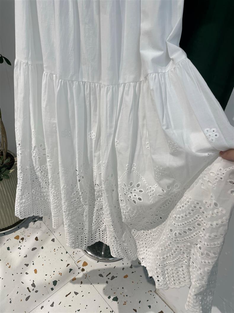 2025春夏花边蕾丝镂空纯色柔软棉质大摆半身裙女长裙