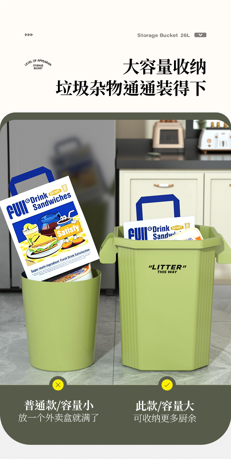 キッチンゴミ箱家庭用ハンドル付き大容量大開口部バスルームリビングルームキッチンゴミ箱2024新しいスタイル