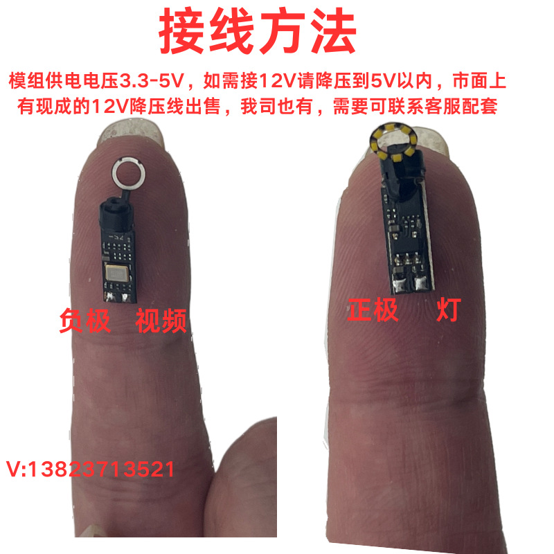 2、模组的工作电压为3.3-5伏,如果是12伏通电,则需要你后端焊接的线上有降压设备,降到5伏以内,市面上有现成的降压线是降到3.3-3.7,我公司也有,如果需要,请联系客服配套购买