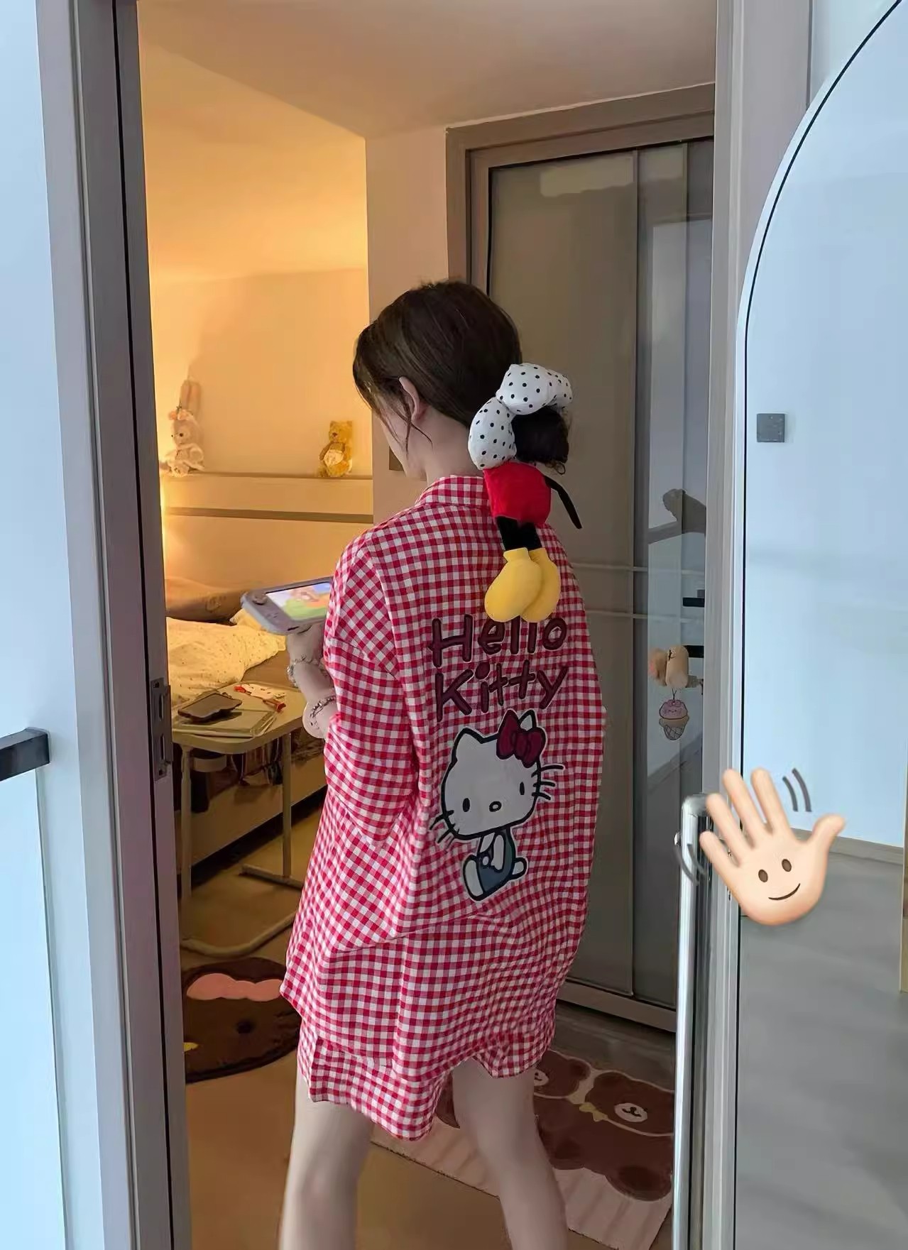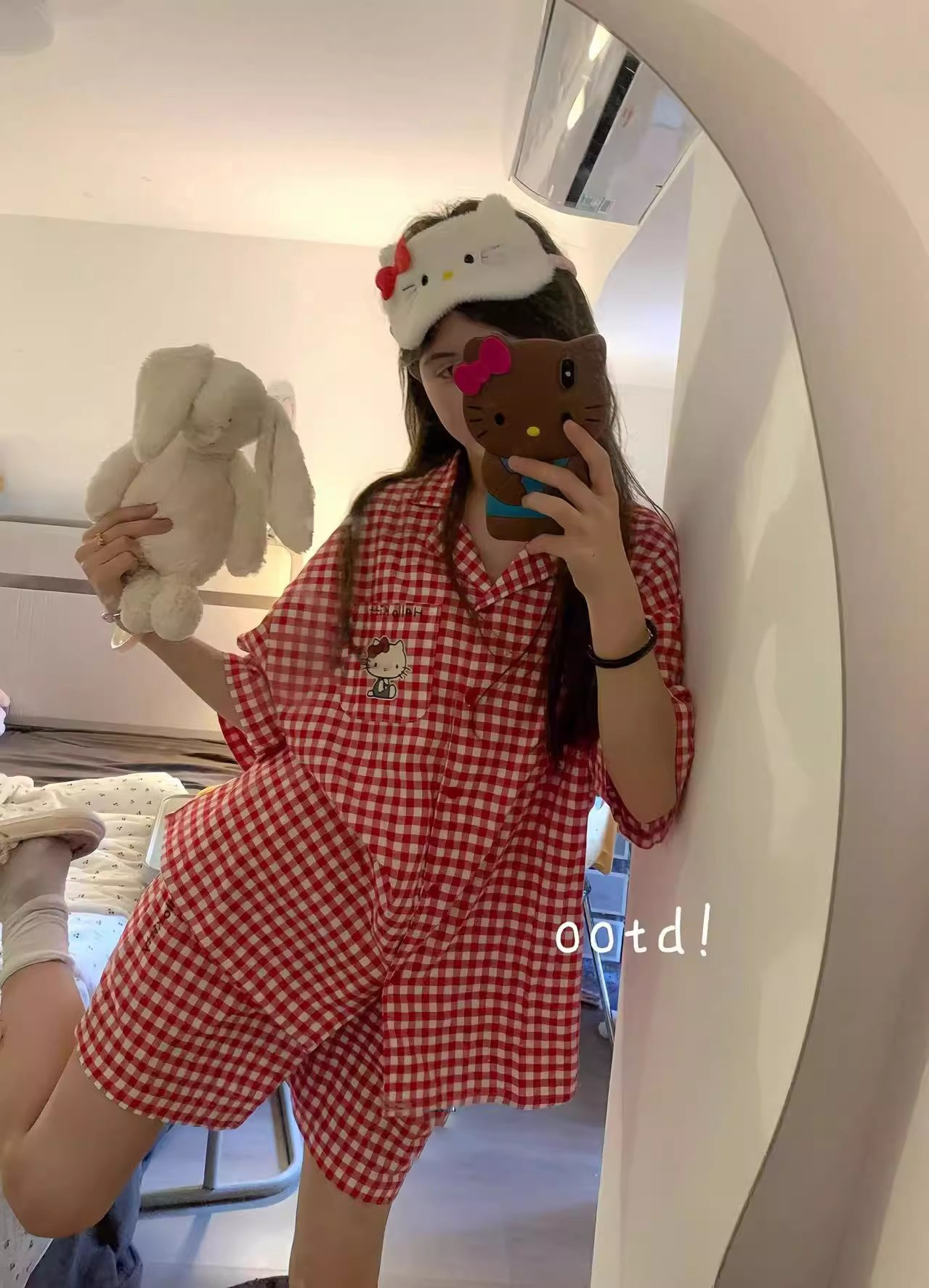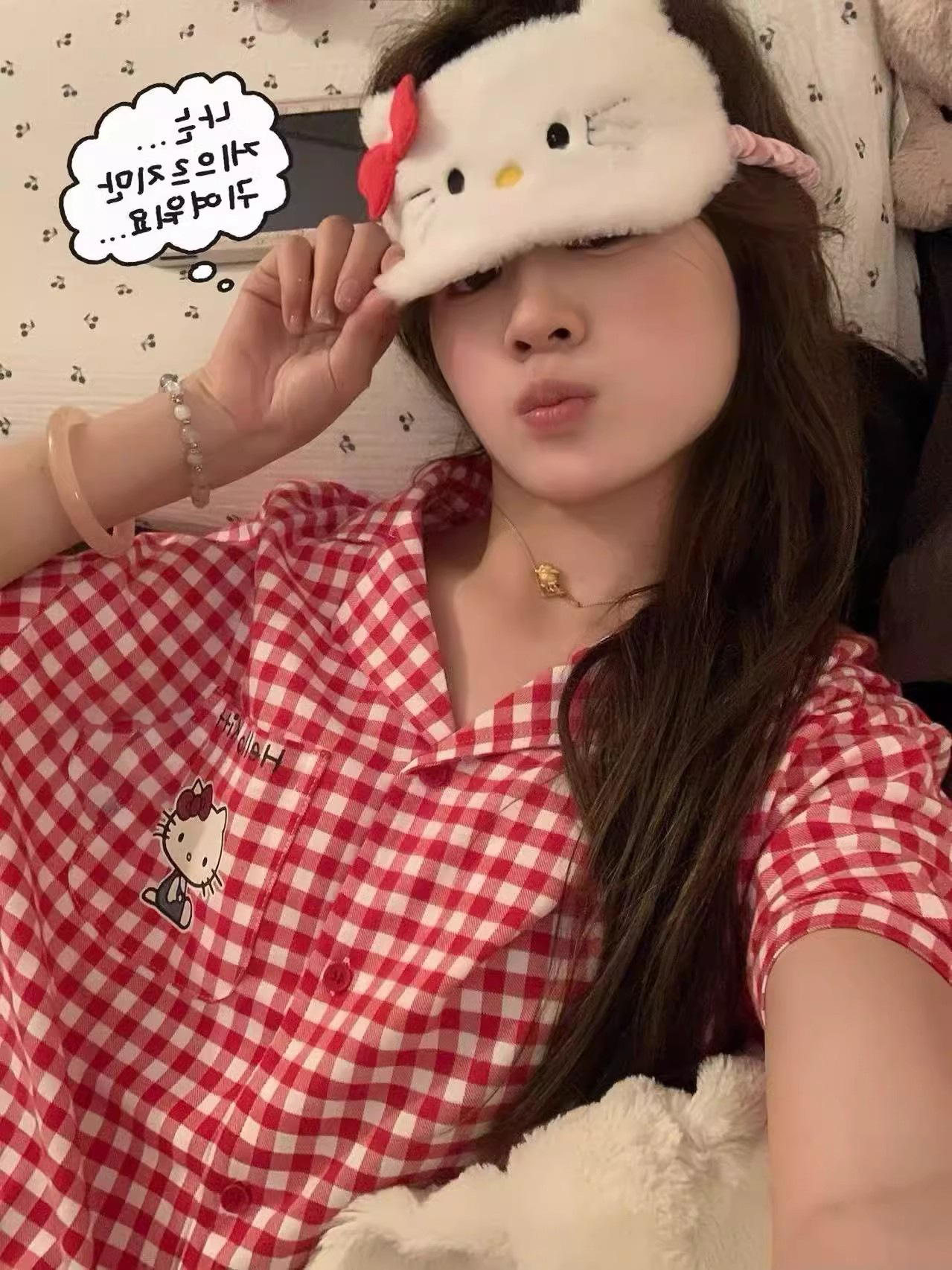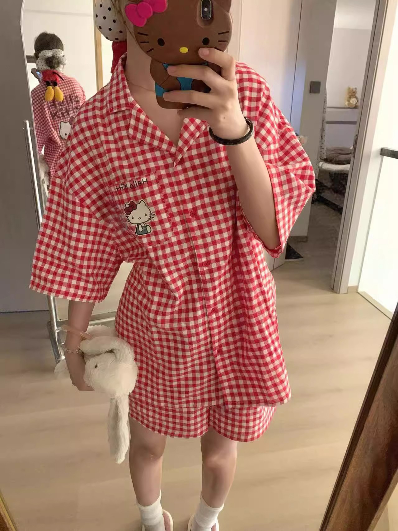 Ins韓国版格子パジャマ女性夏雲綿半袖スーツ家庭服小紅本起爆金クロスボーダー卸売り