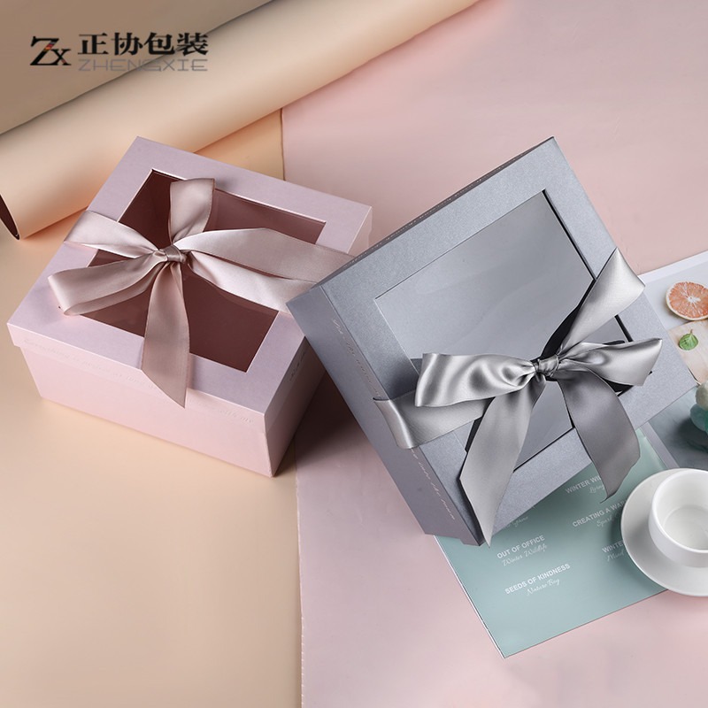 クリエイティブ天地蓋開窓ギフトボックスリボンリボンお土産ボックス誕生日プレゼント化粧品包装ボックス