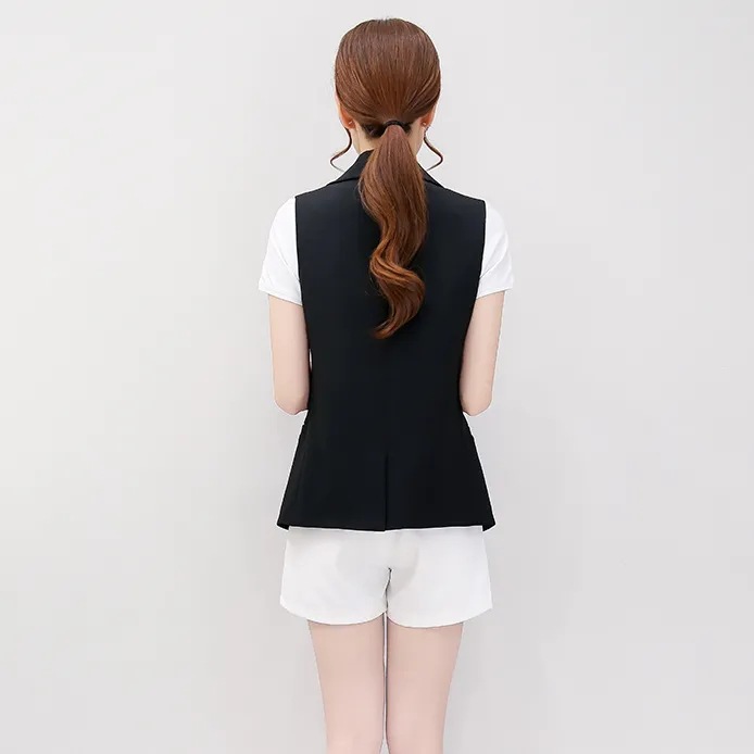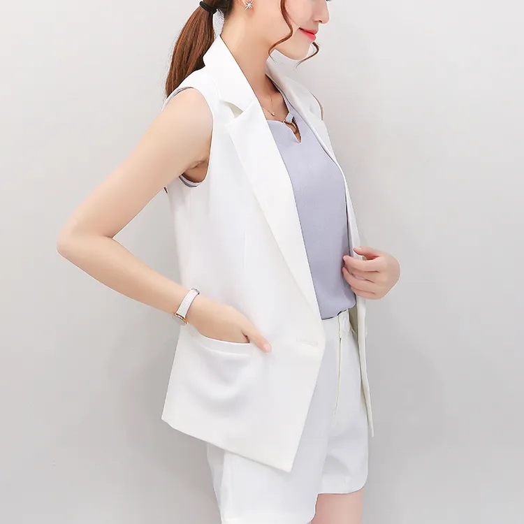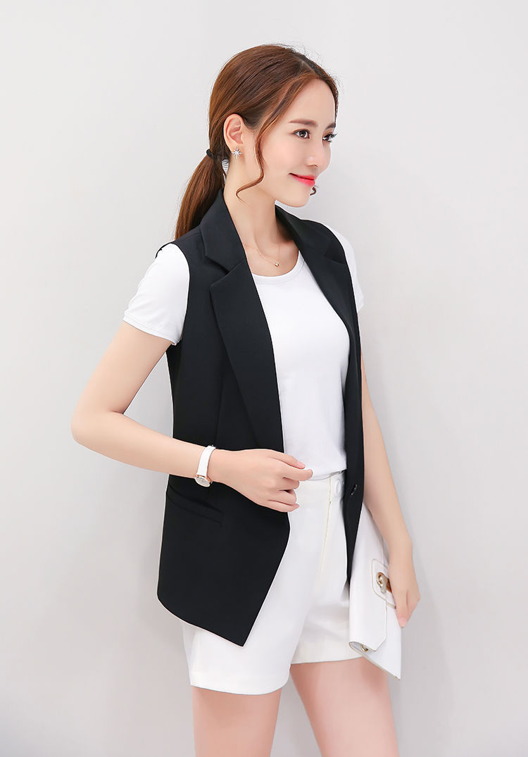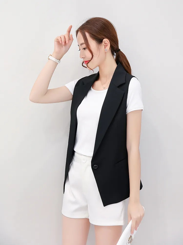 9119スーツのベストの女性のコート2024夏の薄いタイプの小さい背のノースリーブの肩のベストは白いスーツのベストを挟みます。