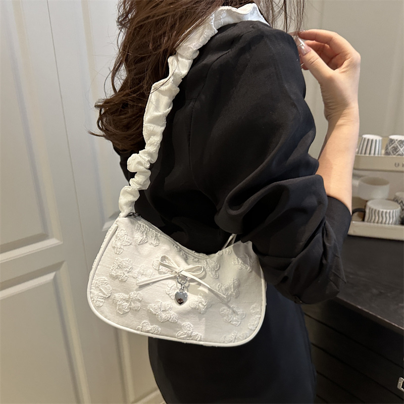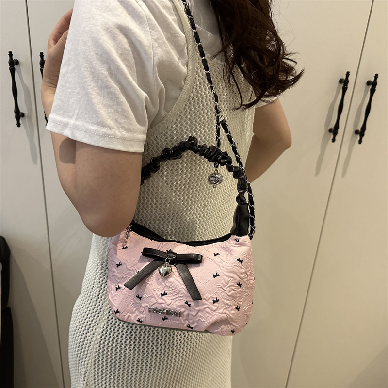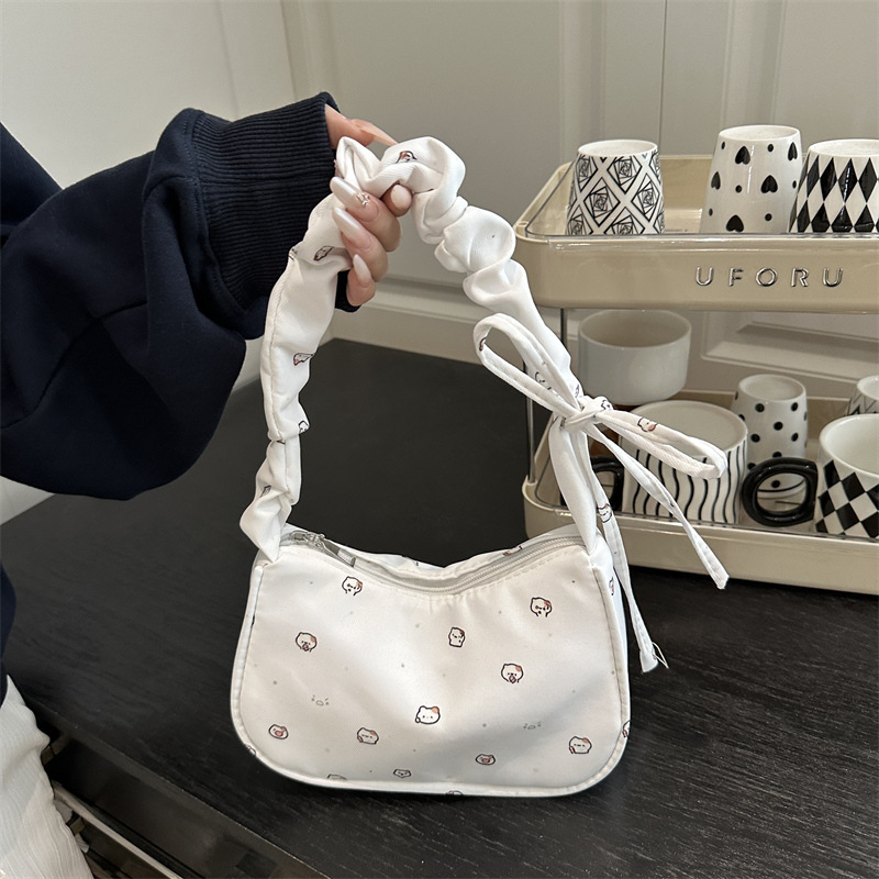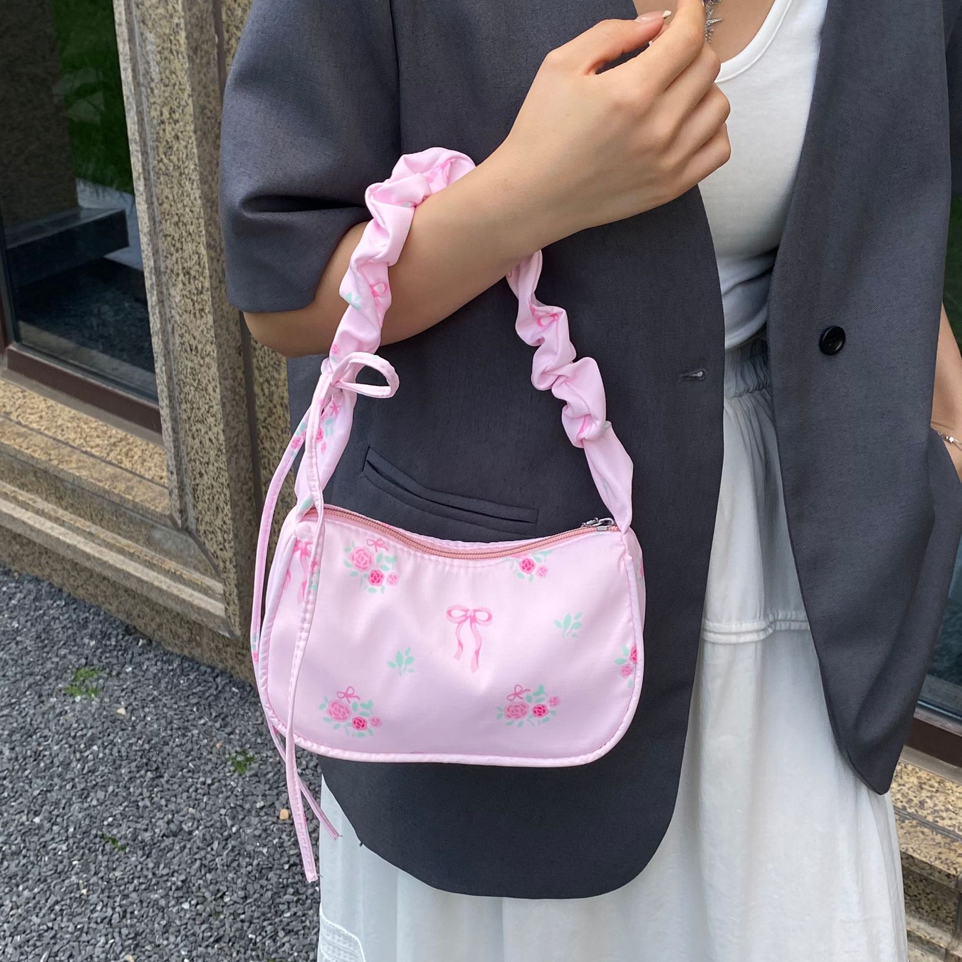 韩版甜美腋下包包女2026新款蝴蝶结碎花手提包小众抽绳百搭单肩包