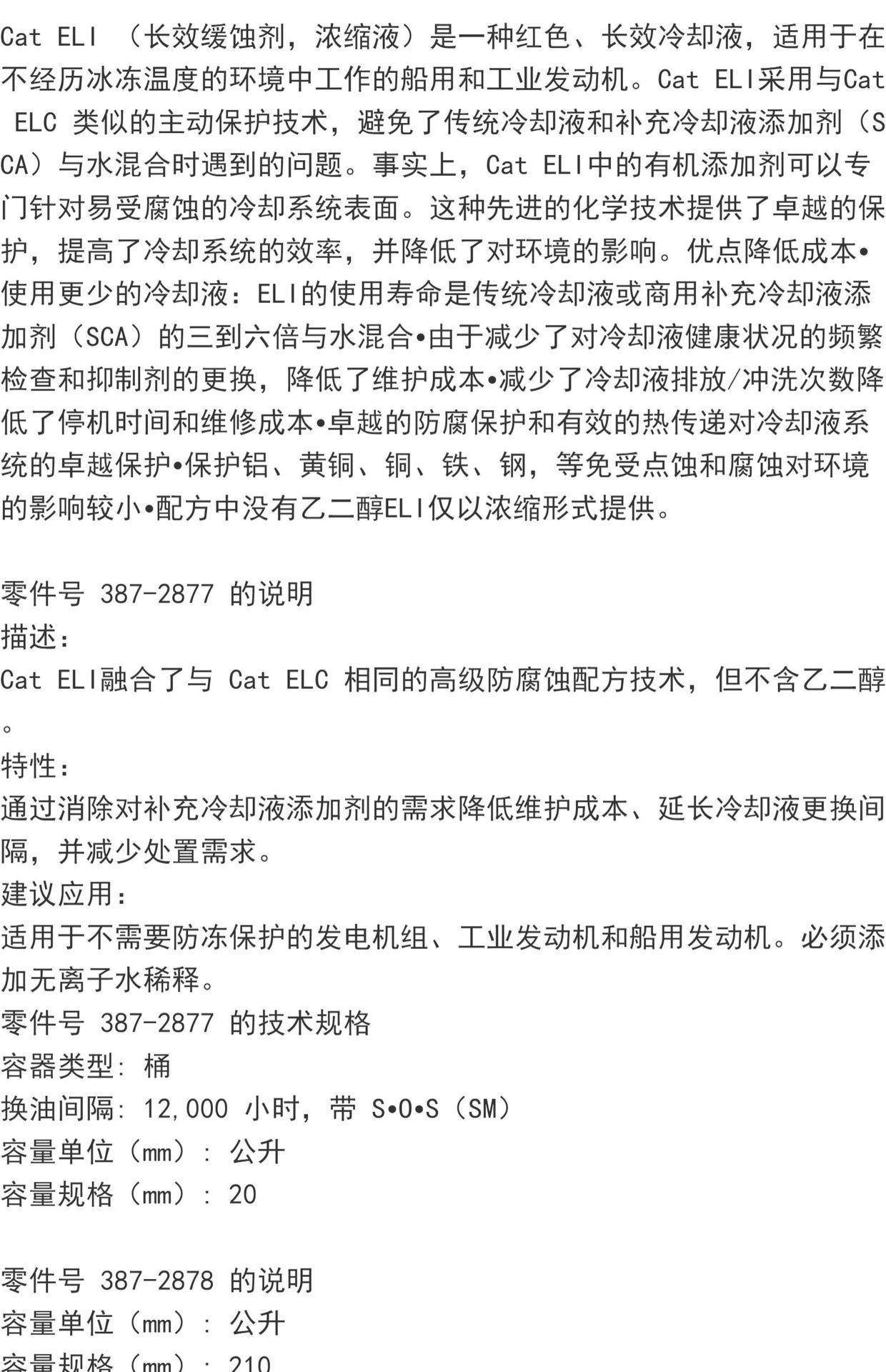 Carter Cat ELI 長期不凍液、船舶および産業用エンジン濃縮物 387-2877 冷却液