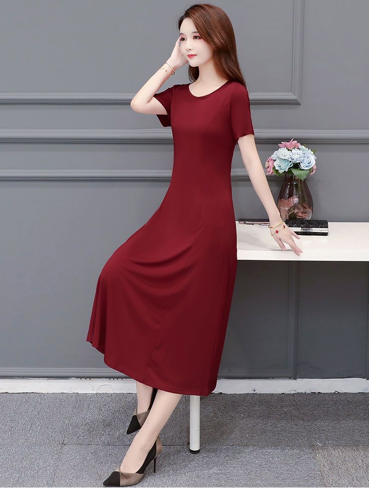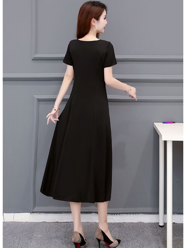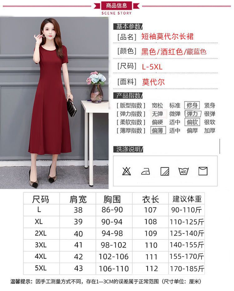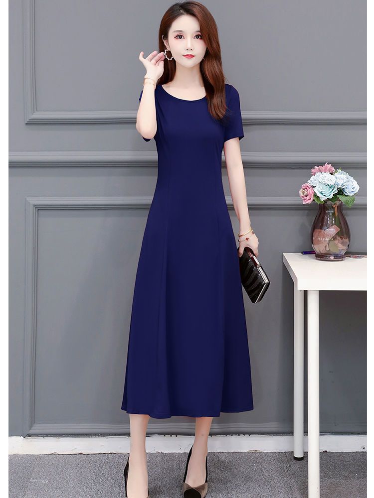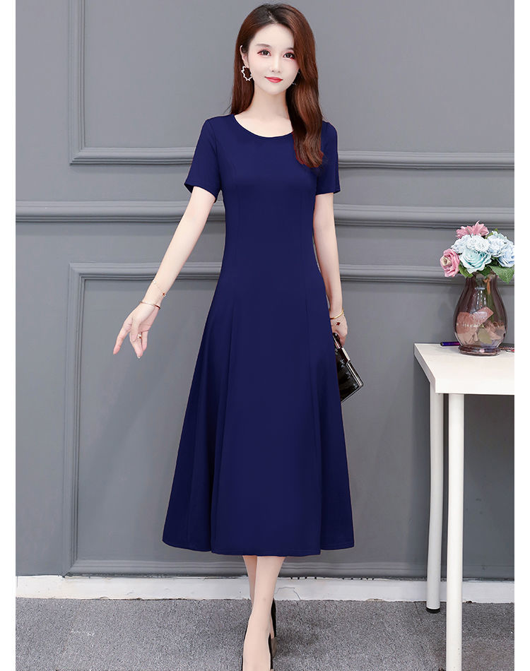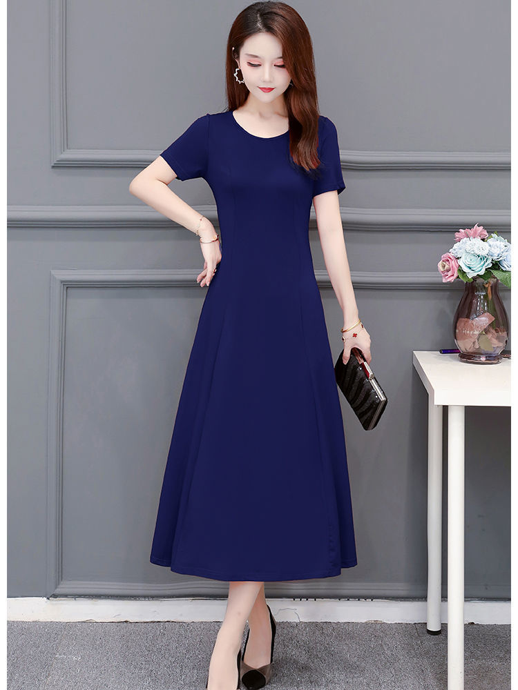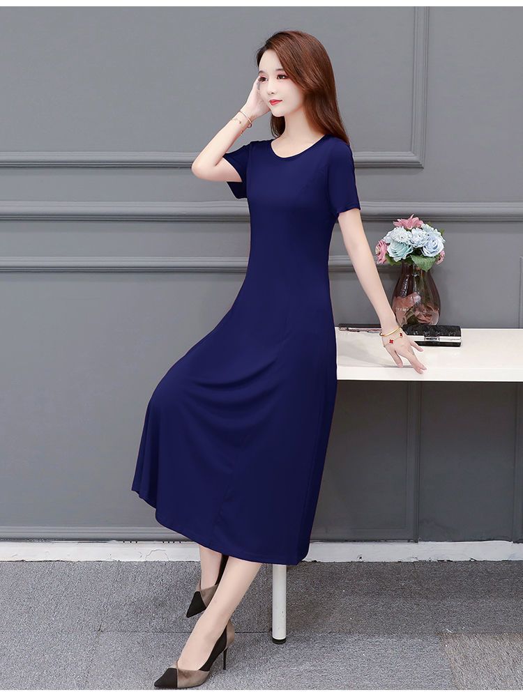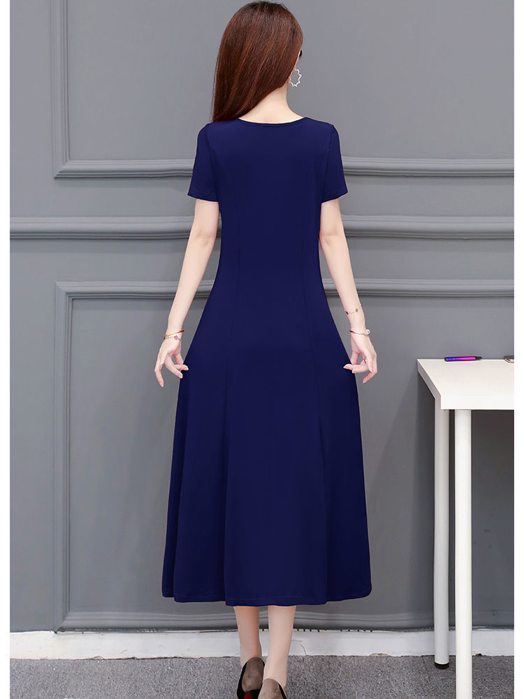 225莫代尔连衣裙女短袖气质妈妈夏装中长款大码裙子收腰显瘦大摆