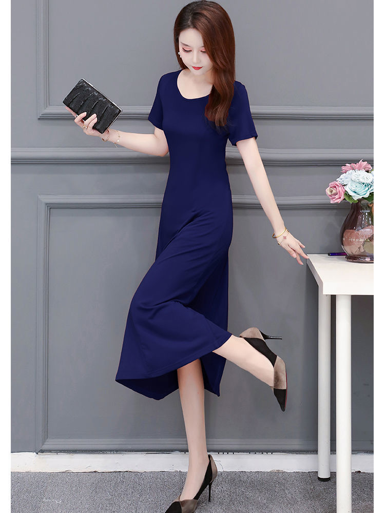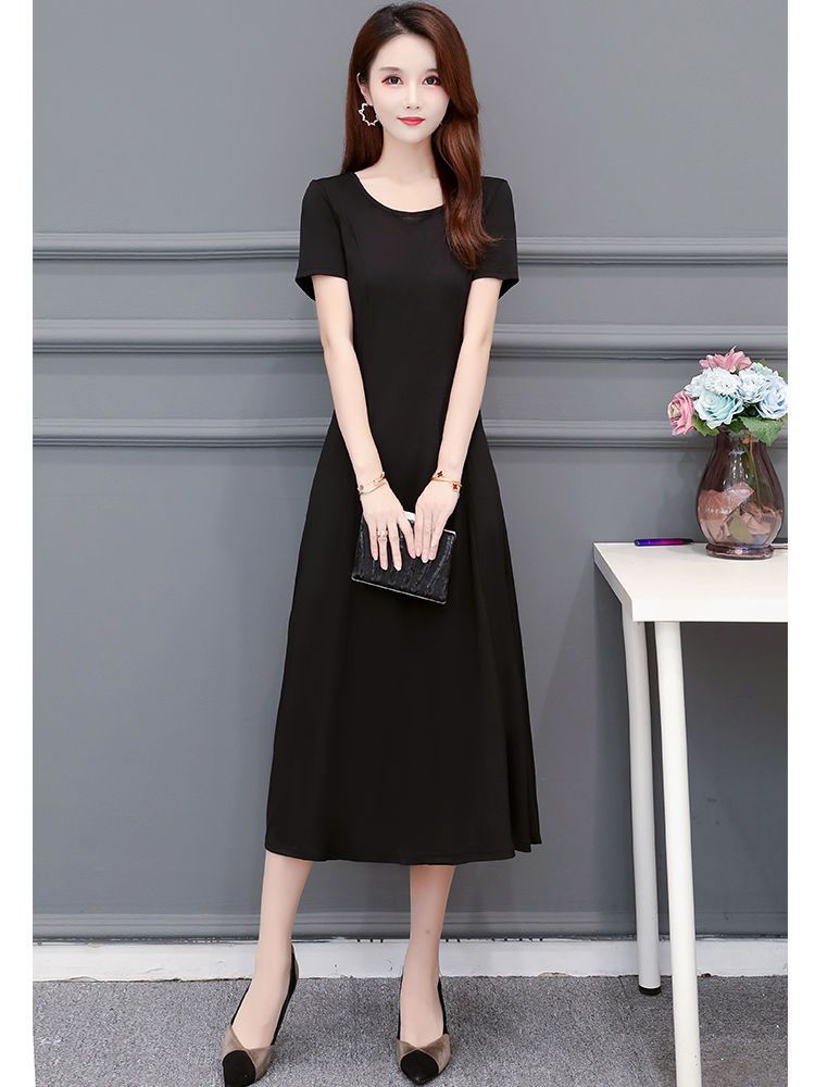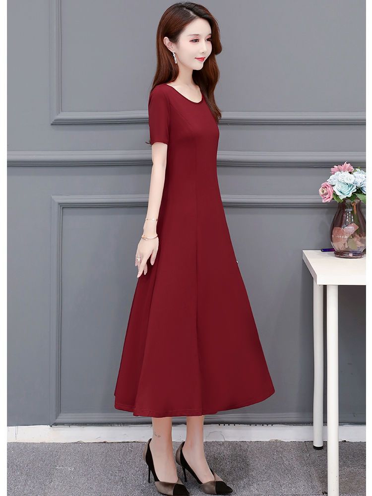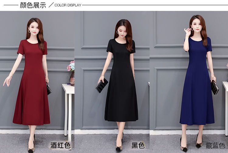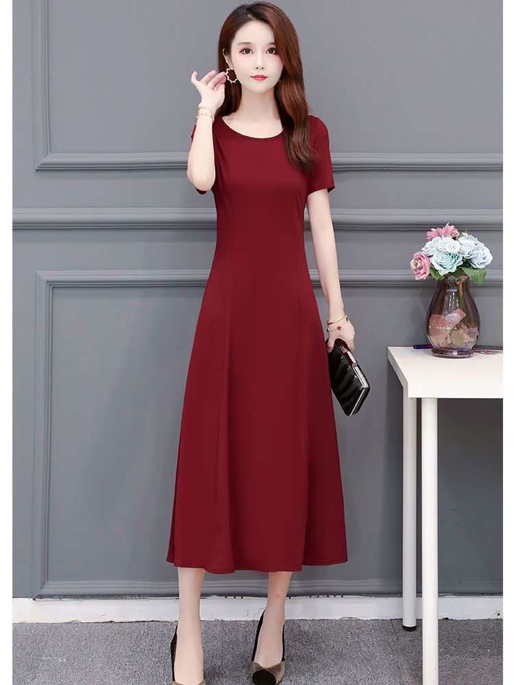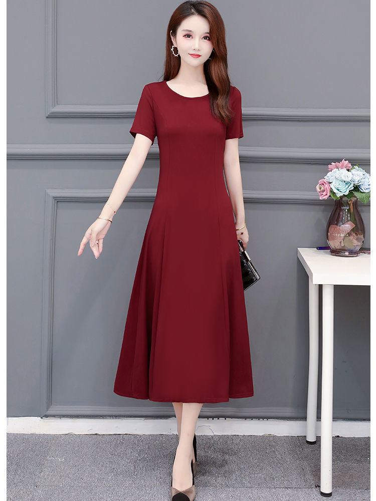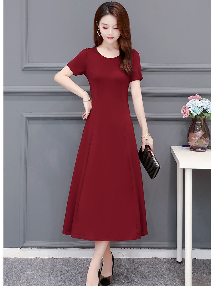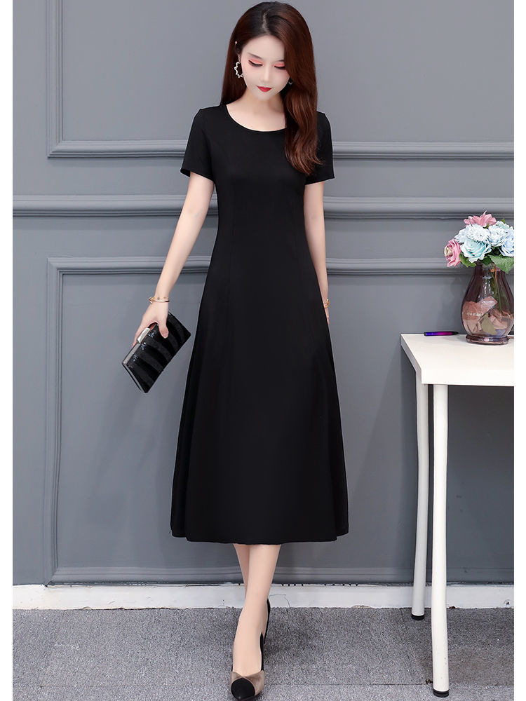 225莫代尔连衣裙女短袖气质妈妈夏装中长款大码裙子收腰显瘦大摆