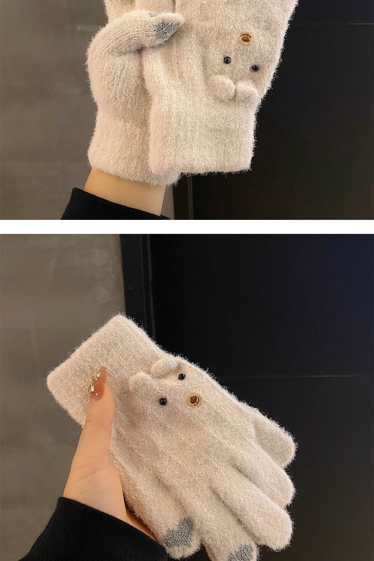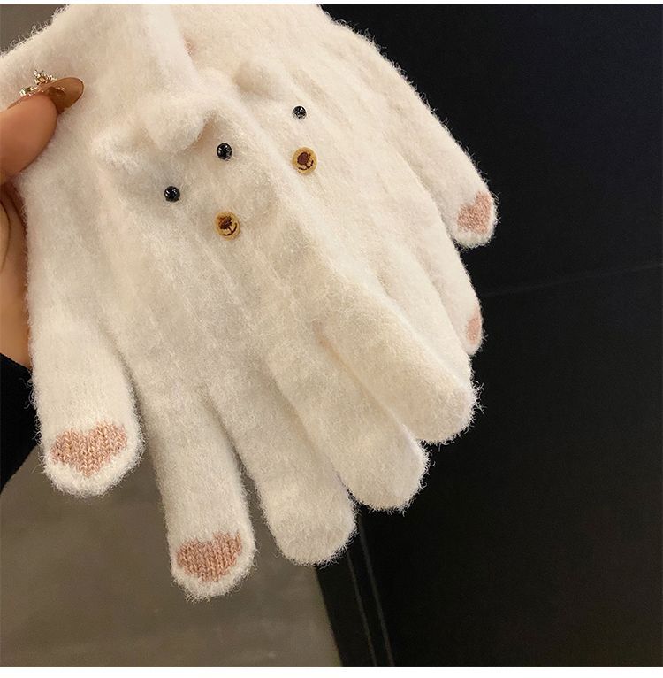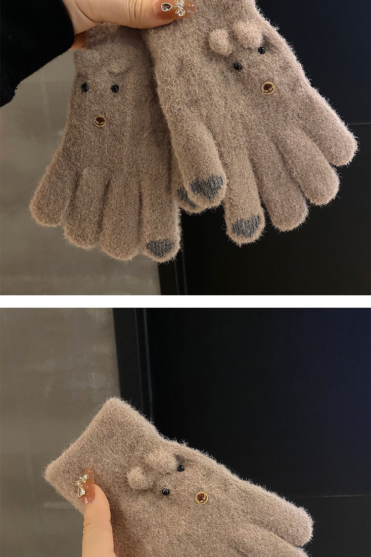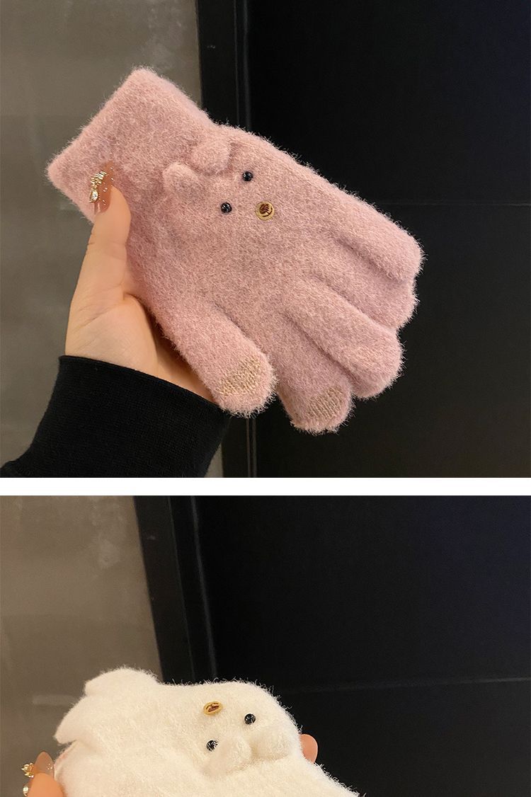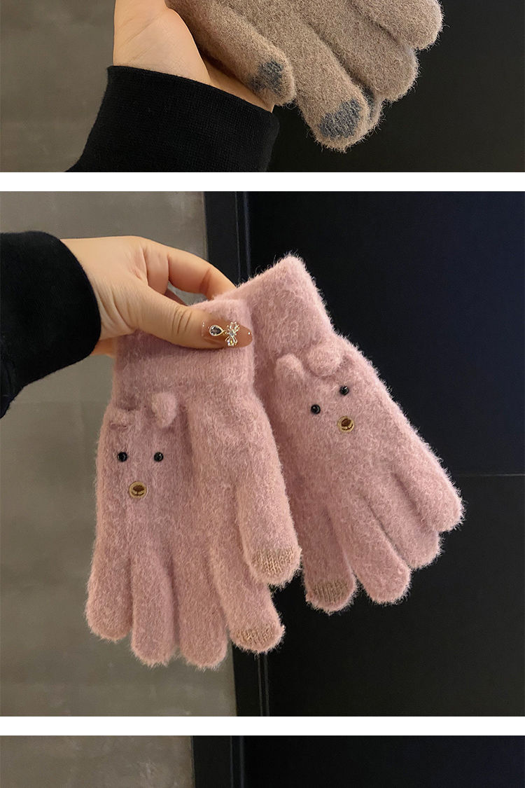 冬用女性用手袋、かわいいベルベット、暖かく防寒、タッチスクリーン、柔らかい女の子、サイクリング学生、5本指サイクリング、秋と冬