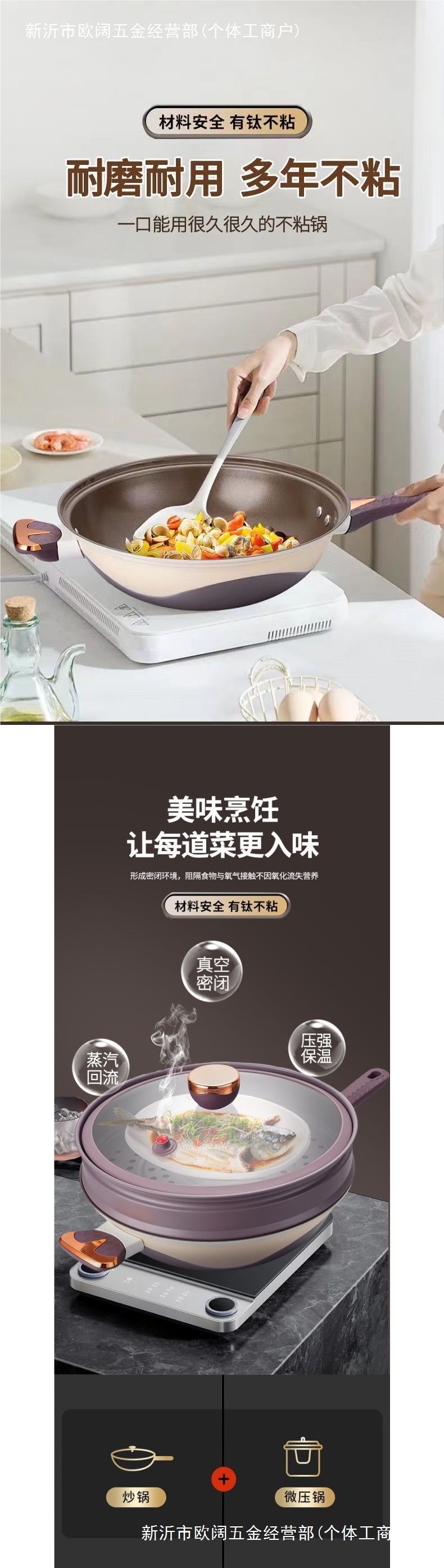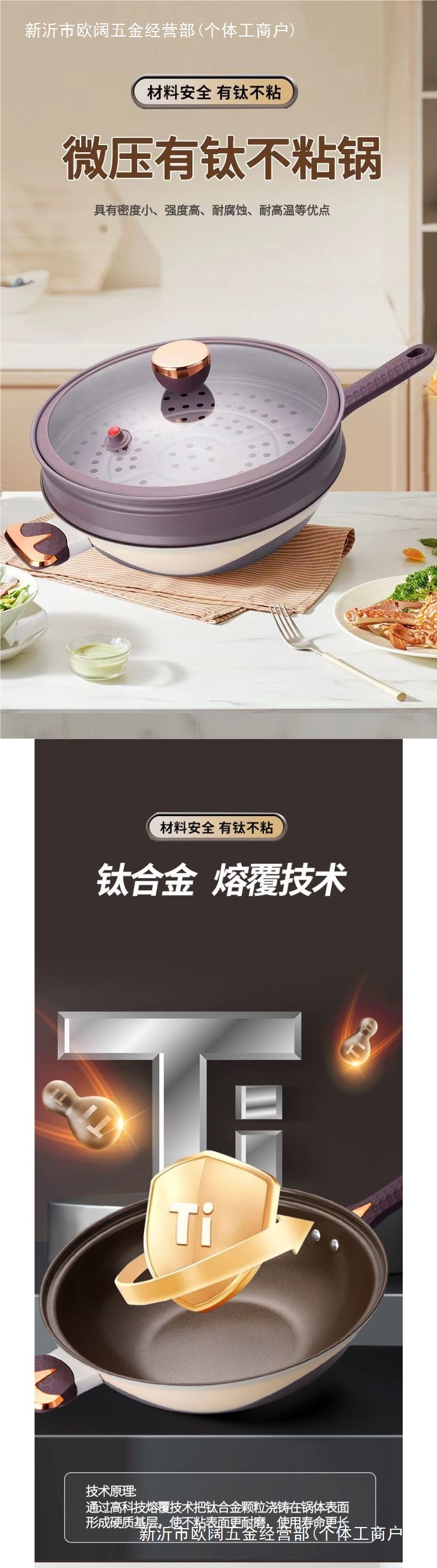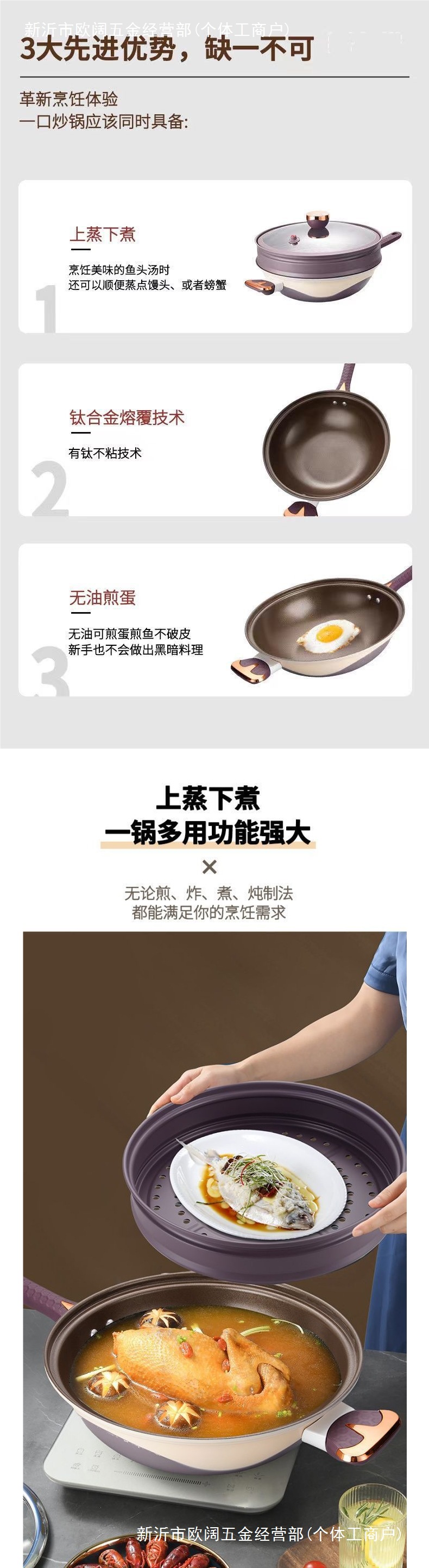 双色钛金不粘锅健康少油烟家用炒微压有钛平底蒸笼炒锅