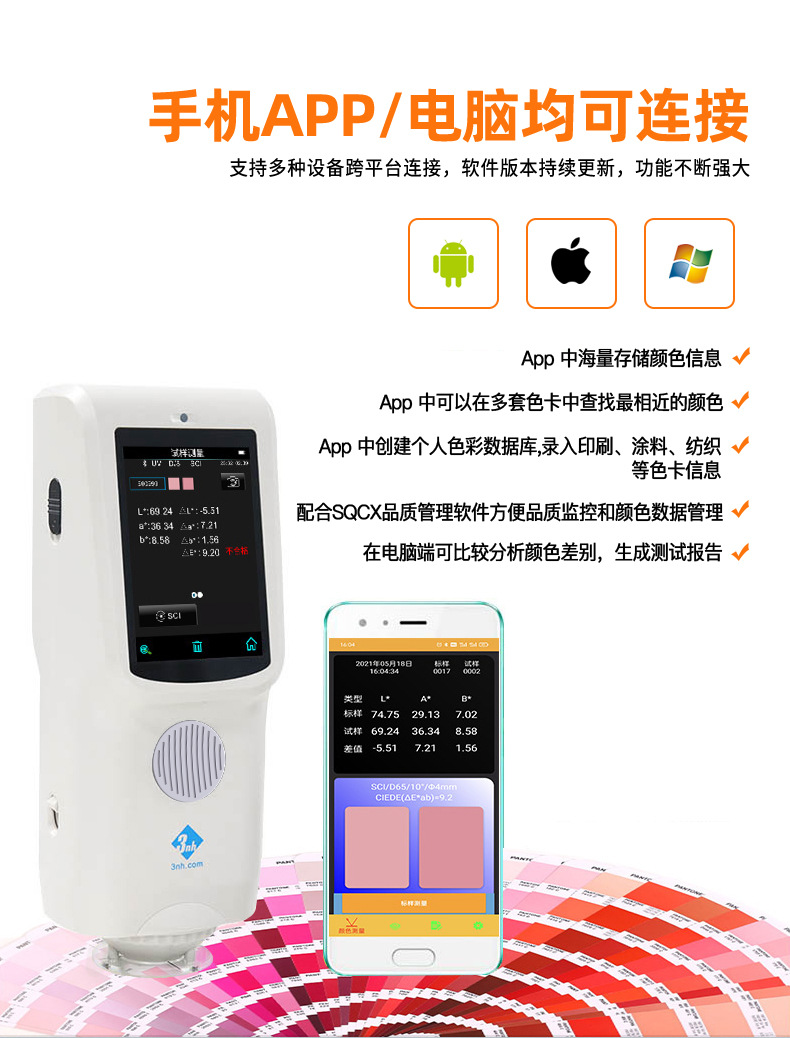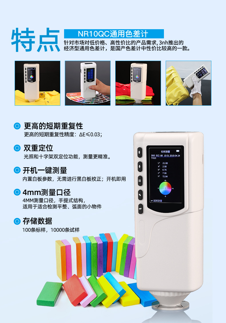 3nh Sanenshi 色差計 NR10QC ペイントプラスチックポータブル SC10 高精度分光光度計 CR8
