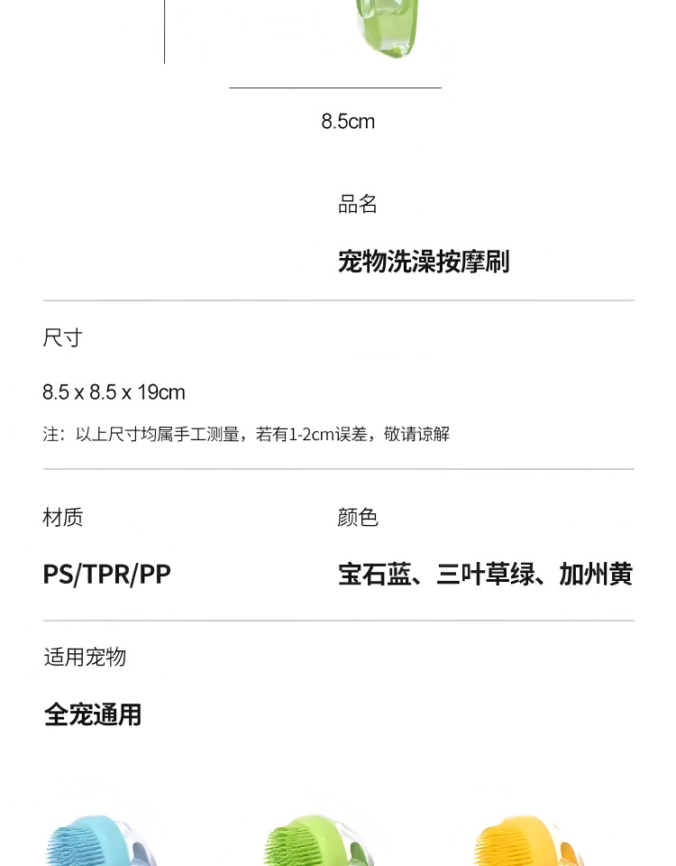 仕様 ペットバスブラシ [液体追加可能] - カリフォルニアイエロー,ペットバスブラシ【液体追加可能】 サファイアブルー,ペットバスブラシ【液体追加可能】-スリーリーフグリーン